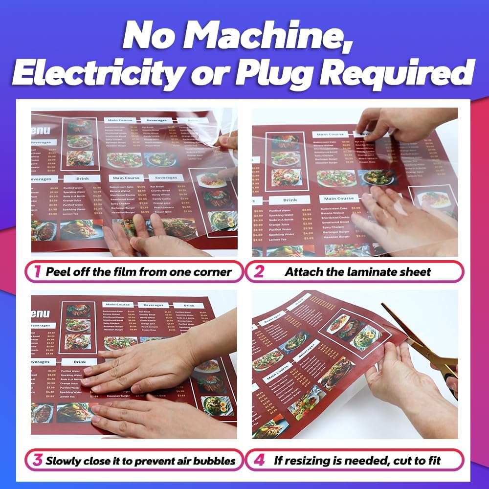 • No Machine or Heat Needed: Enjoy a seamless, instant lamination experience with Hashi self-adhesive laminating sheets—no laminator, heat, or special equipment required, making it safe for all ages.