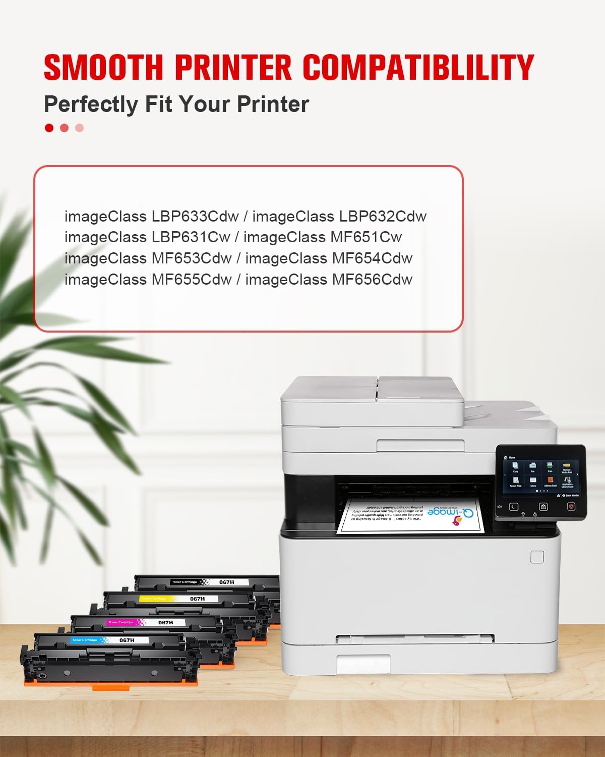 • Product Name:067H High Yield Toner Cartridge Replacement for Canon 067H CRG-067H CRG067H Toner Cartridge Combo 4 Pack (1 Black, 1 Cyan, 1 Magenta, 1 Yellow)