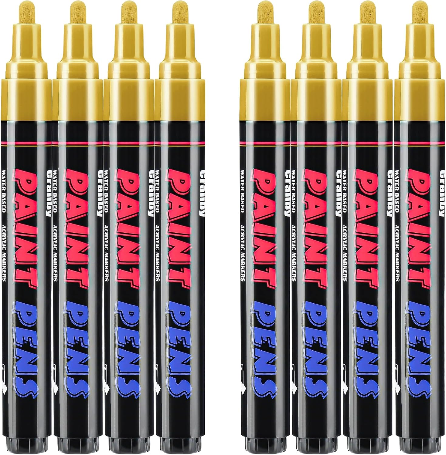 Gold Paint Pens Paint Markers - 8 Pack Permanent Quick Dry Waterproof Marker Pens for Rocks Wood Fabric Plastic Canvas Glass Mugs Metal Tire Stone