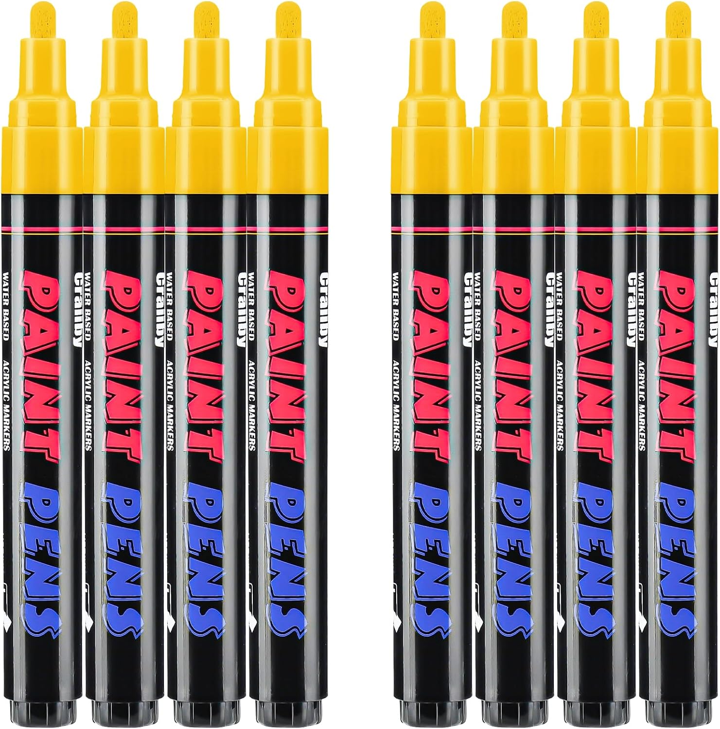 Yellow Paint Pens Paint Markers - 8 Pack Permanent Quick Dry Waterproof Marker Pens for Rocks Wood Fabric Plastic Canvas Glass Mugs Metal Tire Stone