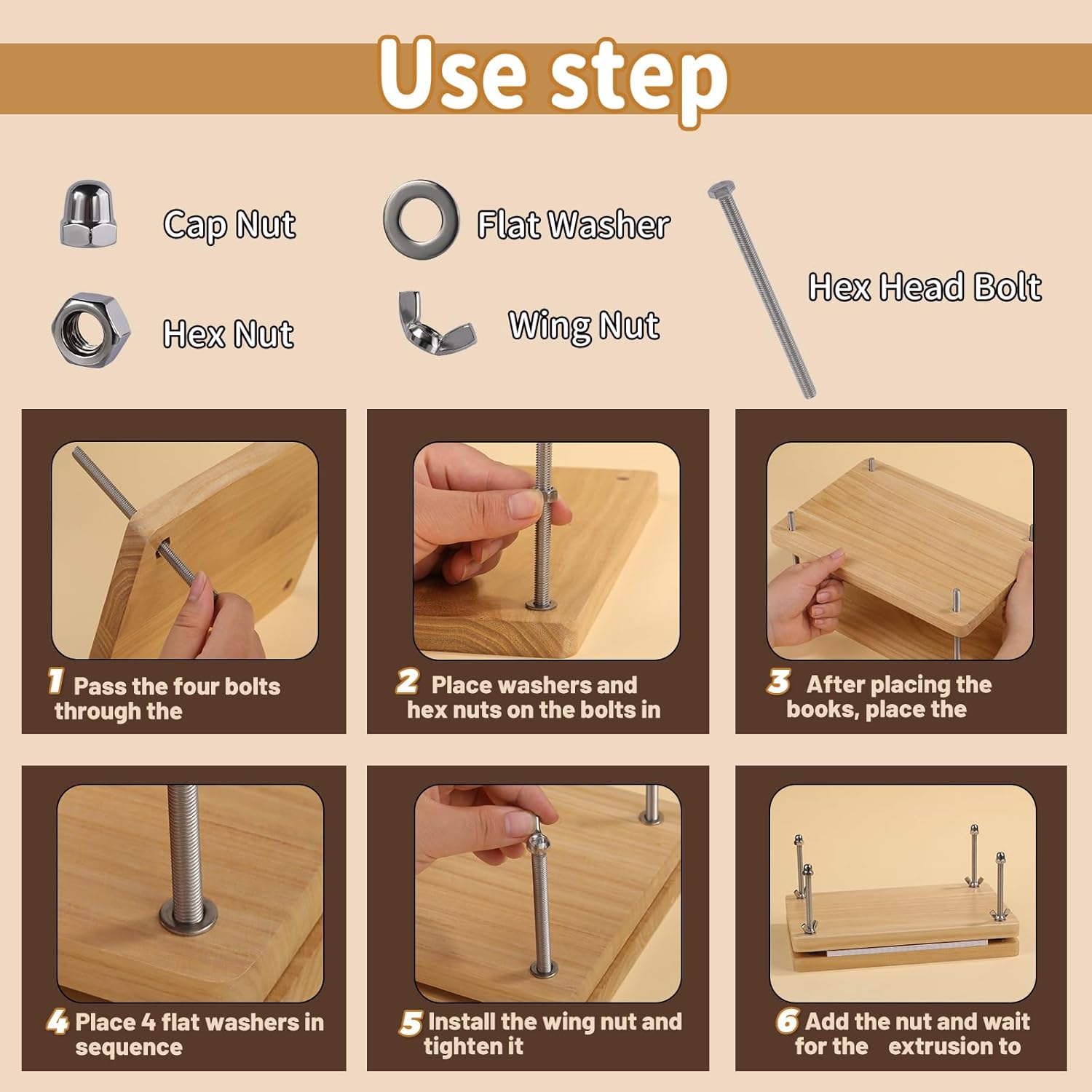 • Easy to Install and Use: Book binding kit for beginners provide a supporting instruction manual that details the installation steps of the book press to ensure that novices and experienced can easily learn it. The reasonable design allows us to turn the screw at will to adjust the distance, which is suitable for books of different thicknesses