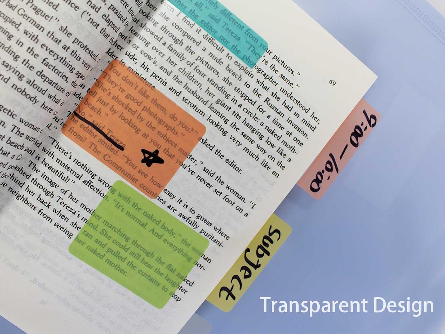 • Safety Material: the tabs made of PET material and special adhesive, waterproof, non-toxic, no odor, smooth writing; self adhesive part is transparent