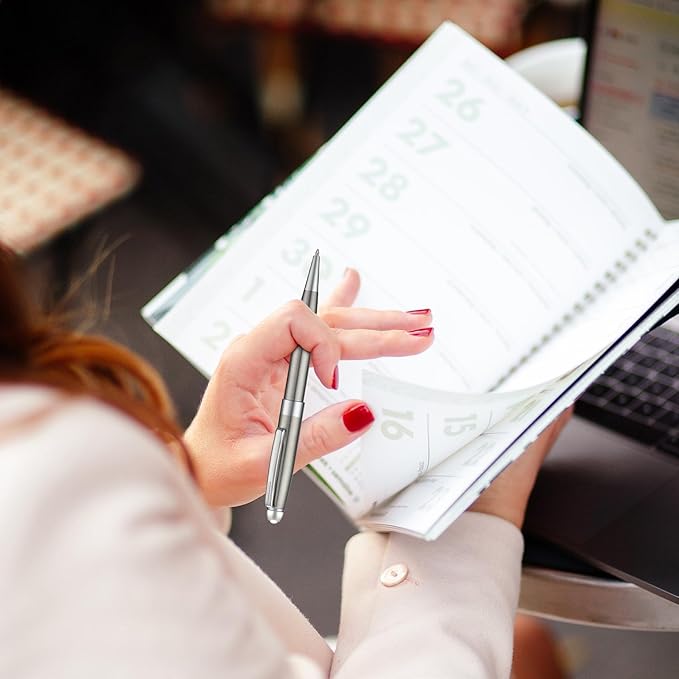 • ✅ Elegant design - The surface of the pen is metal-polished for a glossy finish. It is easy to grip with a smooth feel when held in hand. The sturdy metal clip helps you attach the pen to a notebook or uniform pocket.