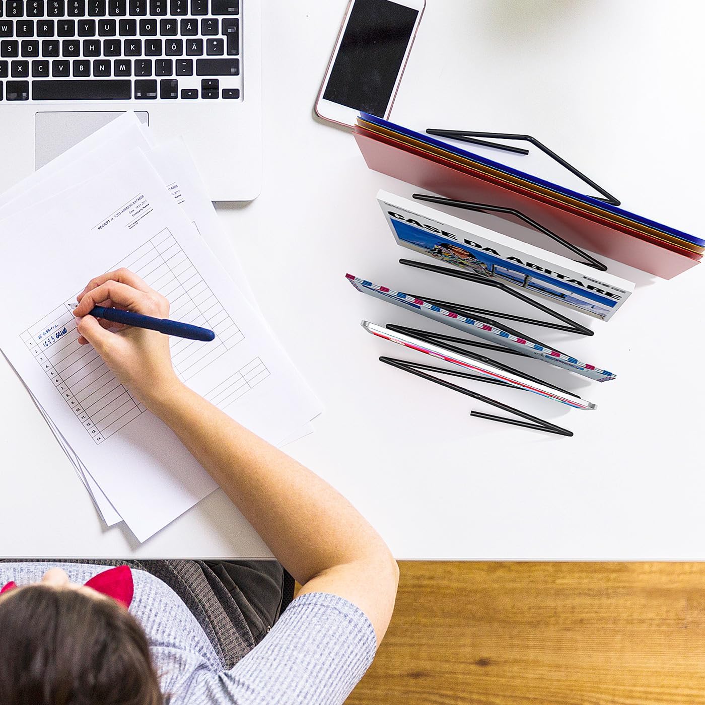 • Expandable 7 Slots Magazine Rack:The desktop 7 sections file organizer provide enough space for storage. It will help you to categorize your magazines, books, files, folders, newspapers, mails, books, notebook pad and other items, reducing your desk clutter down to almost zero, keeping your desk neat and tidy.