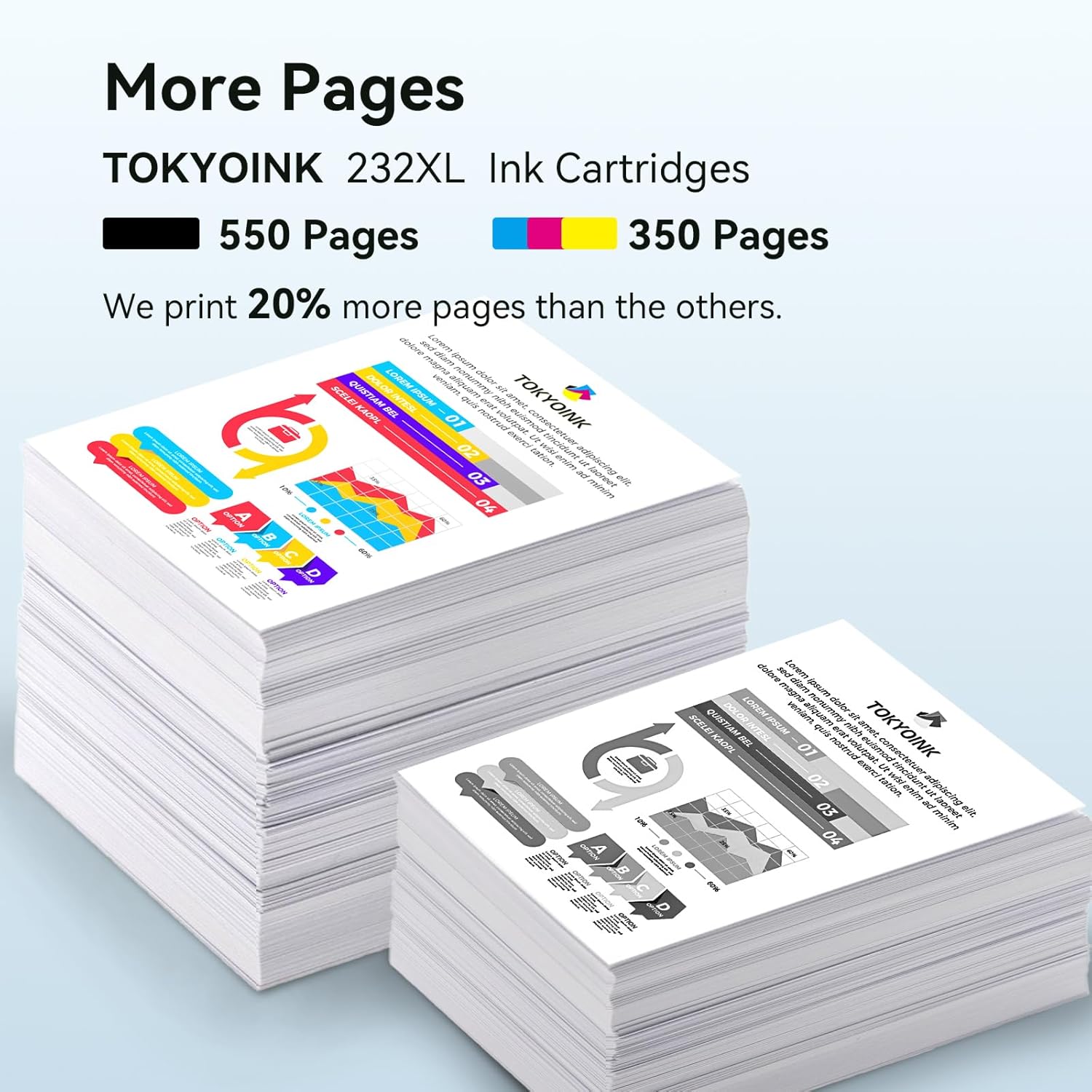 • TOKYOINK 232xl ink cartridges for printer High page yield with 550 pages printouts per 232XL black ink cartridge and 350 pages per 232XL color ink cartridges