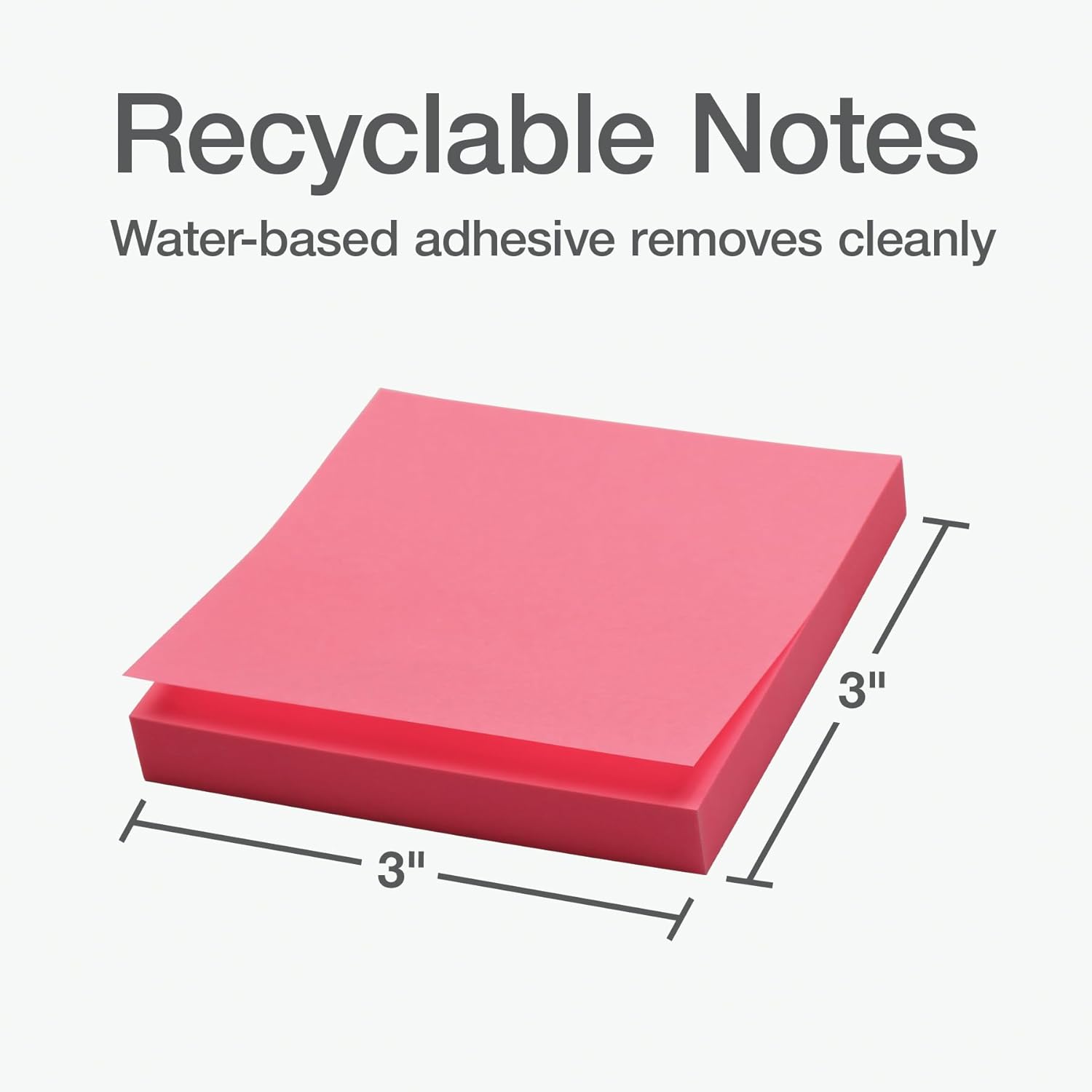 • Adhesive notes feature a strong, water-based adhesive and are recyclable, so when you no longer need them, you can recycle them; perfect for students, teachers or anyone who needs colorful reminders