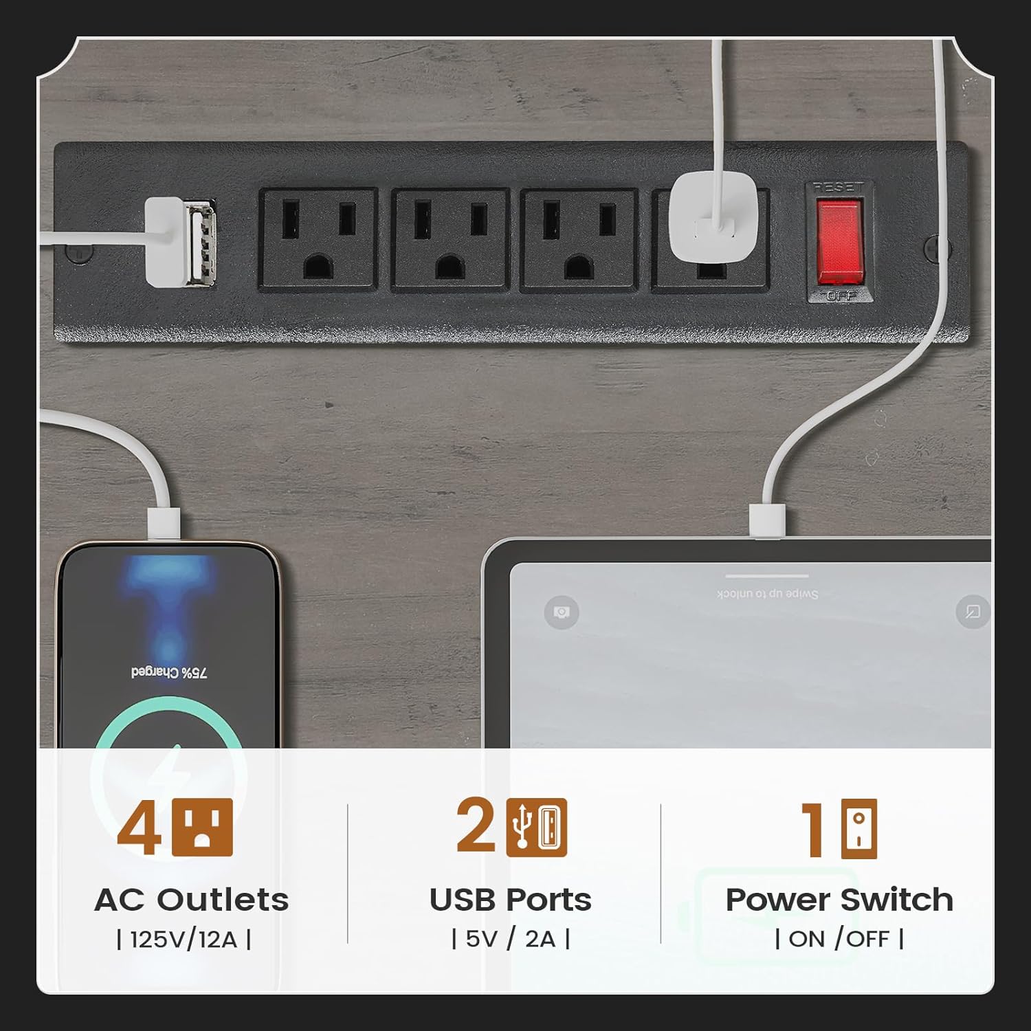 • 【Power Outlets】This computer desk is equipped with 4 AC outlets, 2 USB charging ports to provides convenience for charging your gaming gear, tablet, printer or phone. The switch is convenient and safe to turn off power, no need to unplug appliances at all times.