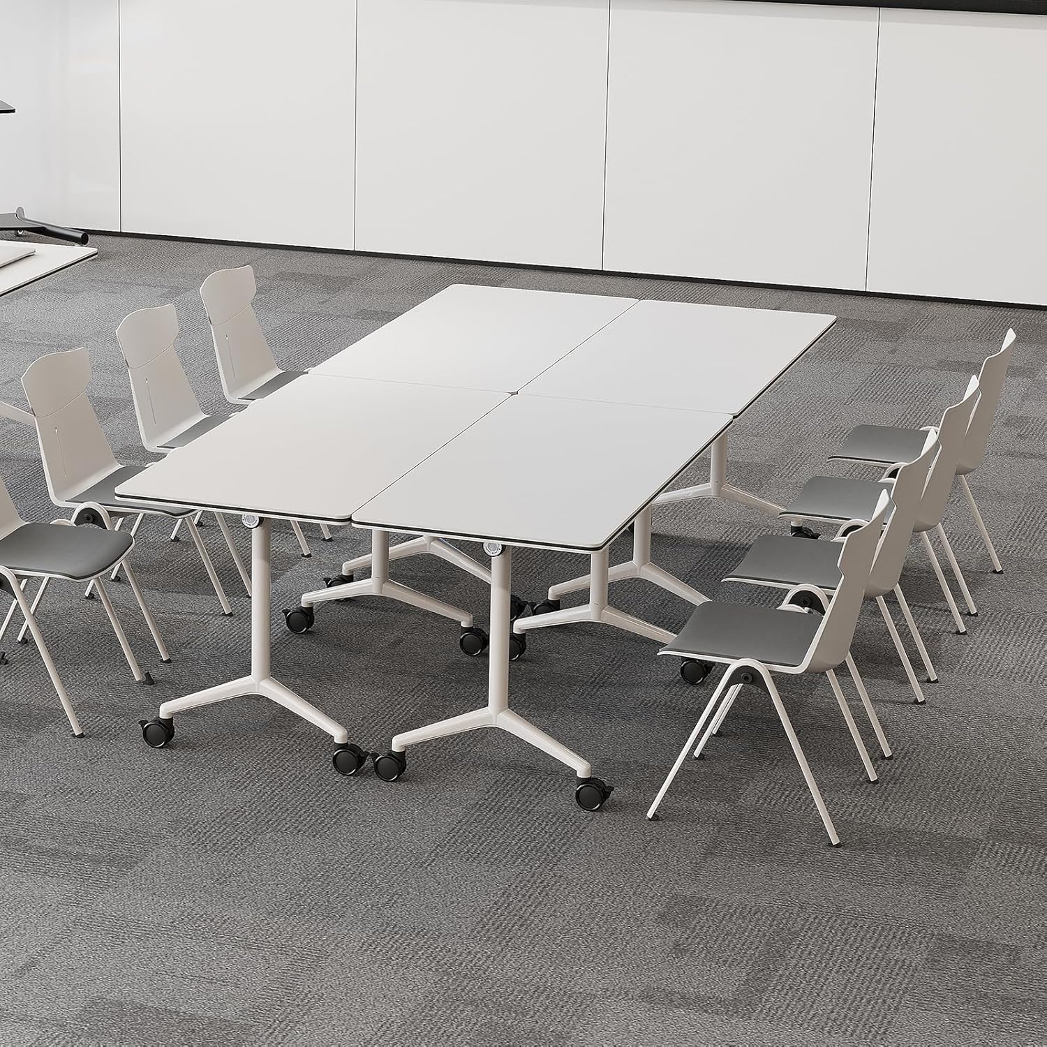 • ⭐【Foldable Conference Table】: You can easily flip the conference room table by turning the knob, saving space, easy to store and transfer. The folding conference table has a simple and generous appearance, which is perfectly suitable for conference rooms, reception rooms, training classrooms, etc.
