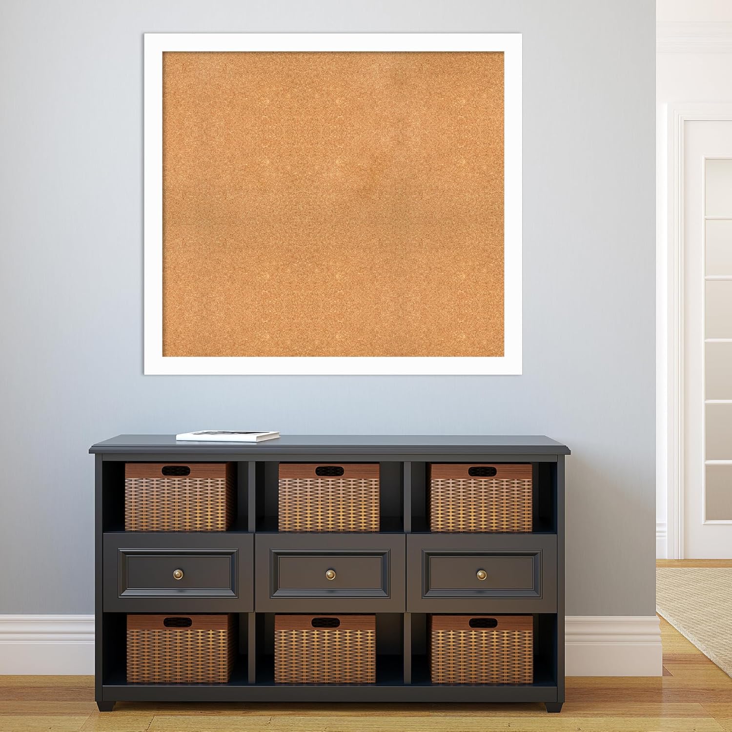 Amanti Art Natural Cork Board for Wall, 37x41 Vision Board with White Frame, Oversize Corkboard Office Decor for Home Organization, Casual Corkboard Pinboard to Display Items for Home Organization in