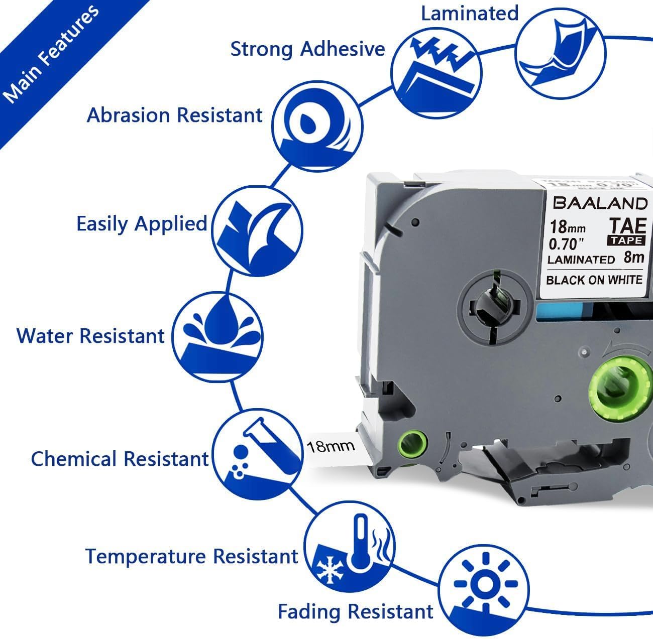 • DURABLE FEATURES - Our tze-241 tz tape 18mm 0.7 laminated white tape features water resistant, grease resistant, abrasion resistant, chemical resistant, higher or lower temperature resistant as well as fade resistant, so it is durable for outdoor or indoor use