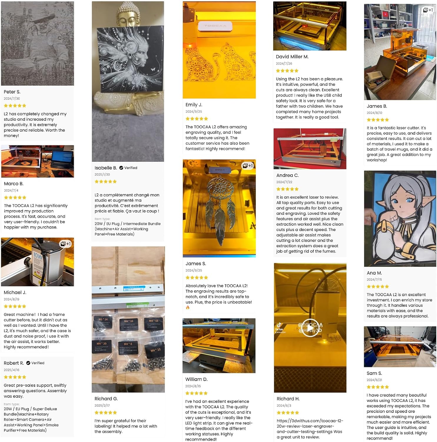 • 【World's 1st USB Child Lock】 When the safety lock is unplugged, the machine will cease to function, thereby preventing children from getting injured due to misoperation. The TOOCAA L2 machine also incorporates numerous excellent safety designs. With patented flame detection, tlt detection, and many other safety features, it safeguards you and your tools in every aspect, allowing you to focus on creation and production.
