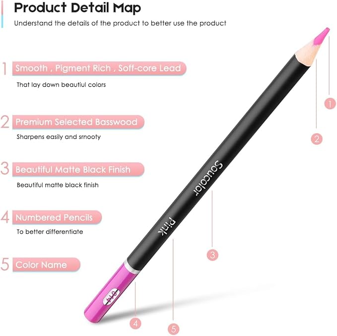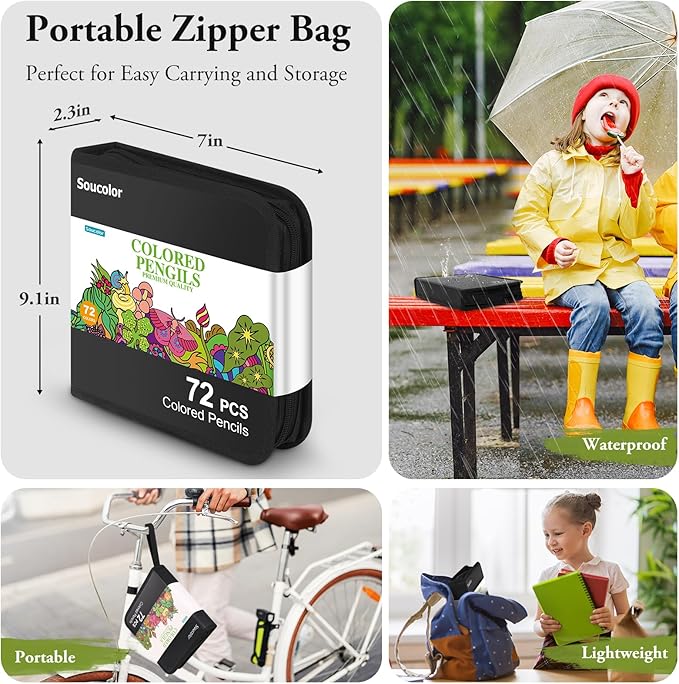 • WHAT YOU GET -- 72 colored pencils + 1 Soucolor Portable Zipper Case. Convenient to storing and keep the color all visible, without any trouble finding the color you are looking for. Perfect for sketchbook, drawing book or adult coloring book.