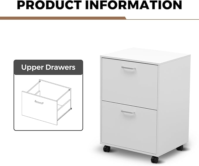• EASY TO MOVE: The filing cabinet is equipped with four rollers, which can be rotated 360°. Built-in brakes on front 2 casters to keep it in position and add stability