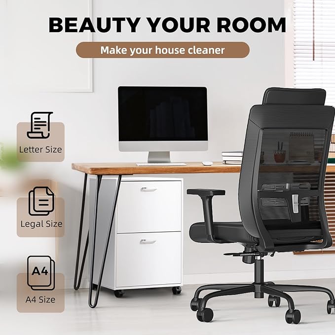 QDSSDECO 2 Drawer Mobile File Cabinet, Rolling Vertical Filing Cabinet fits A4, Legal Paper and Letter Paper for Home Office, White
