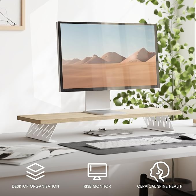 • 【Monitor Stand for Desk】To ensure fenge monitor stand can be used permanently, we have adopted high-quality thickened panels and metal legs. With heavy-duty steel base, so you don't have to worry about collapse or shaking during use. Each desk leg is equipped with a non-slip pad to prevent the table from being scratched. The maximum load-bearing of the monitor riser can reach 55 pounds.