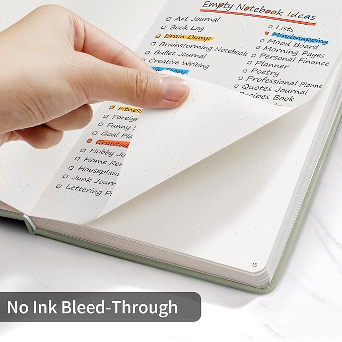 • Multifunctional Cover: The hard cover is made of vegan leather, and designed with a pen loop, an elastic band, two ribbon page markers, an expandable inner pocket.