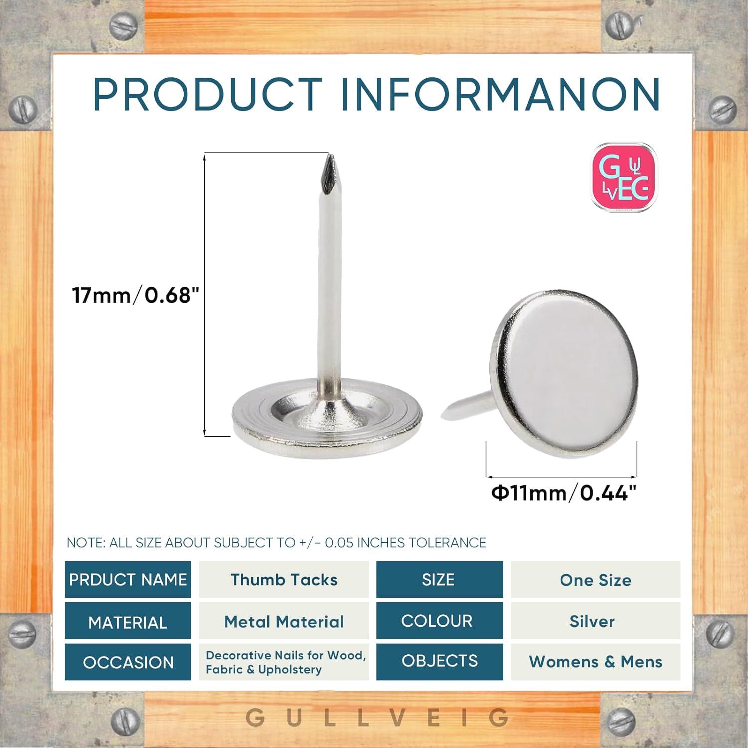 • Decorative and Functional: Our decorative nail heads and long thumb tacks are not only durable but also aesthetically pleasing. They can be used as wall tacks or carpet tacks, adding a touch of elegance to your home or office decor.