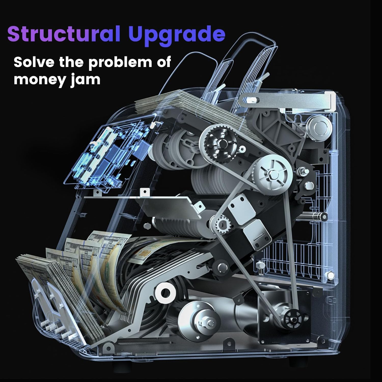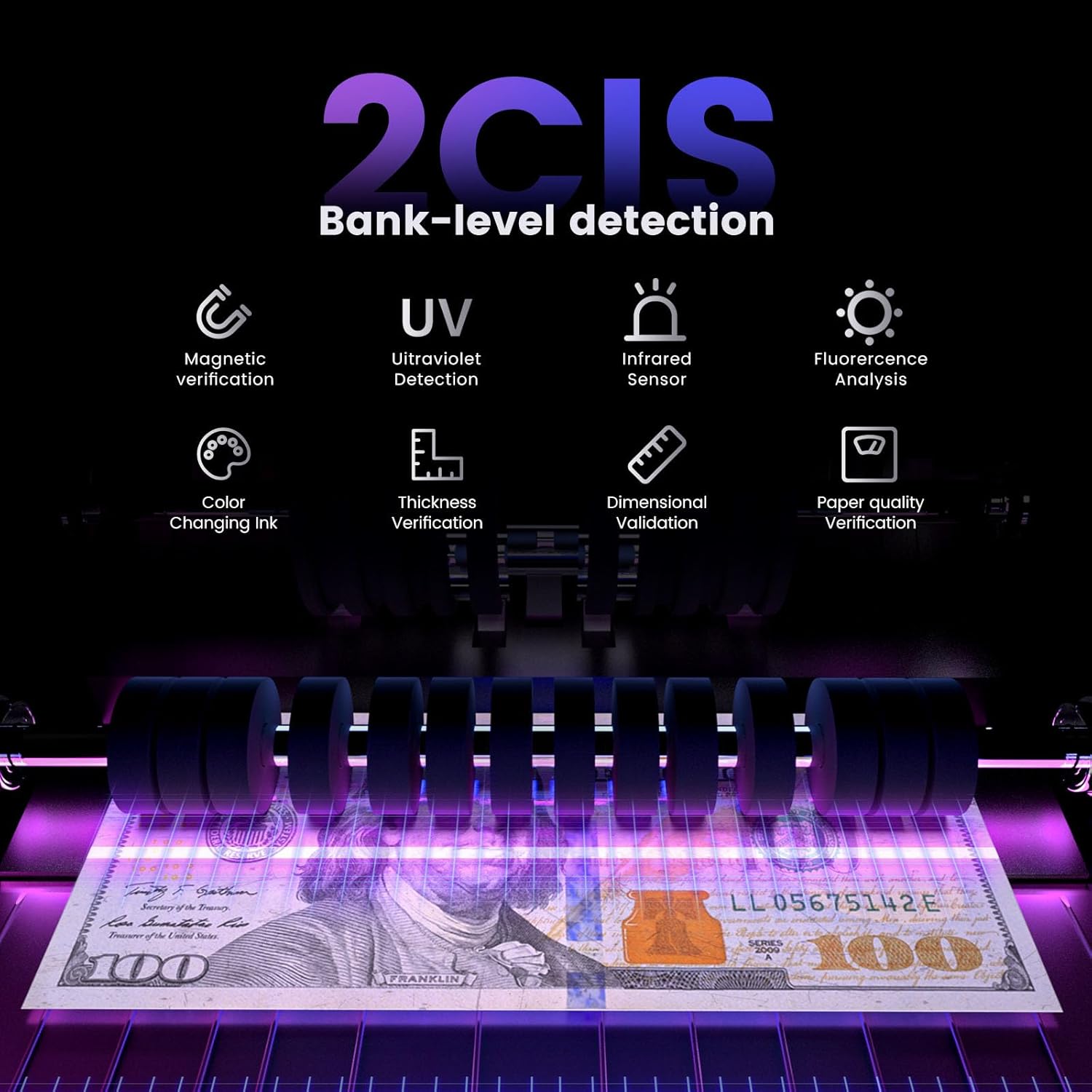 • 【Advanced 2CIS Technology】 With 2 contact image sensors and advanced detection capabilities (UV, MG, IR, NT, and SN recognition), our cash counting machine achieves BANK-LEVEL anti-counterfeiting detection.