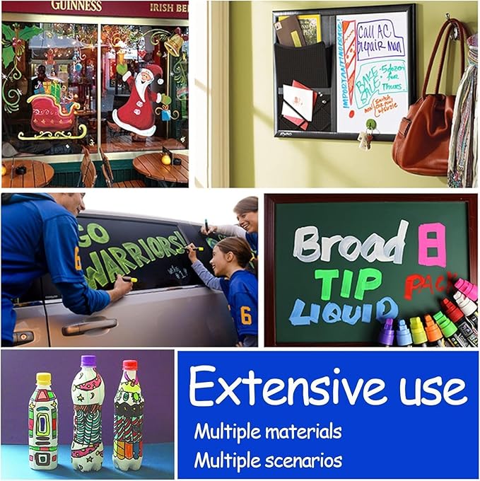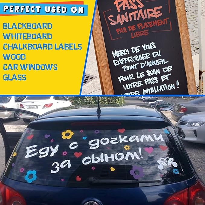 • 8 Colors Chalk Markers: The Smootherpro liquid chalk markers is a set of 8 in bright fluorescent color: red, white, green, pink, yellow, blue, orange, purple.