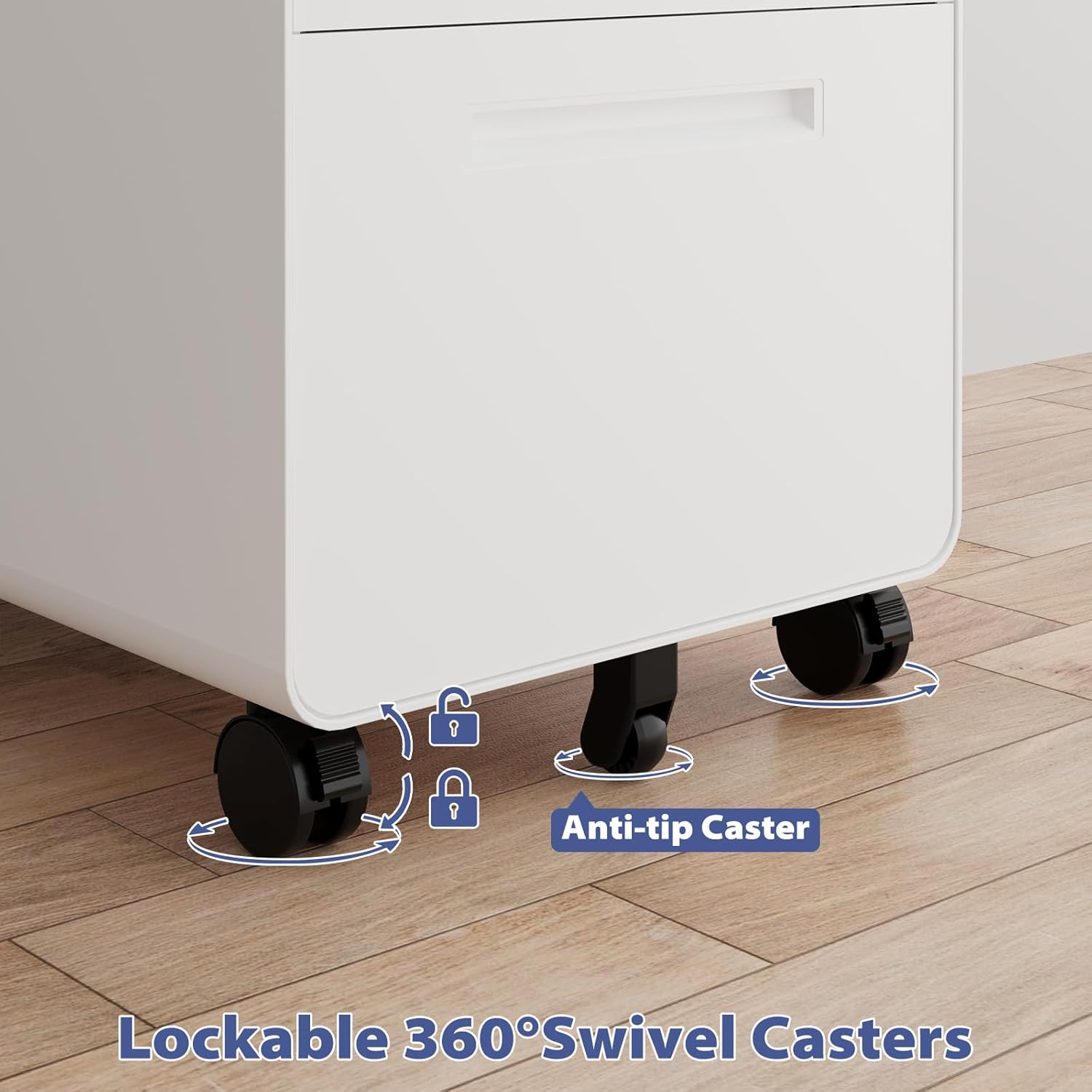 • 【Flexible and Convenient & Lockable Storage Cabinet】: The rolling file cabinet is equipped with 4 360-degree rotating casters (2 lockable, 2 standard), which are easy to move and allow you to move the under desk storage freely anytime and anywhere. Lockable casters provide stability, and it can be secured next to or under a table. Ensures smooth rolling, prevents scratches, and protects floors, suitable for various environments such as offices, classrooms, and homes.