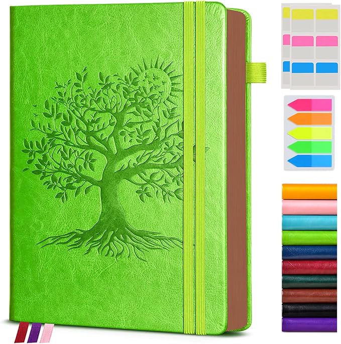 • 【BUILT-IN FEATURES FOR CONVENIENCE】This journal notebook comes with several useful features.The 1 built-in back pocket is ideal for storing loose papers or small items. The 1 elastic pen holder keeps your pen handy at all times.The 2 elastic closures ensure that the notebook stays securely closed.Additionally, the 3 colored ribbon bookmarks help you easily find your place.And the 3 free sticky tabs are great for marking important sections.