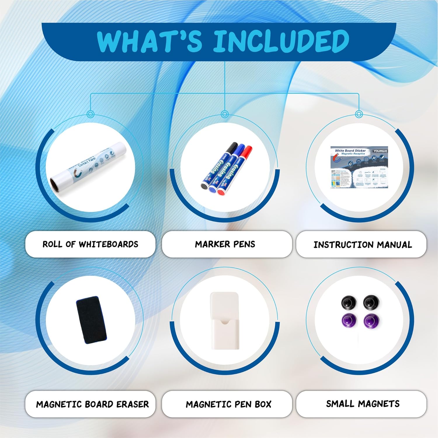 • Starter Kit: A handy starter kit is included to help you get the most out of your whiteboard surface. This magnetic whiteboard is suitable for home, kitchen, office, classroom, studio, and more