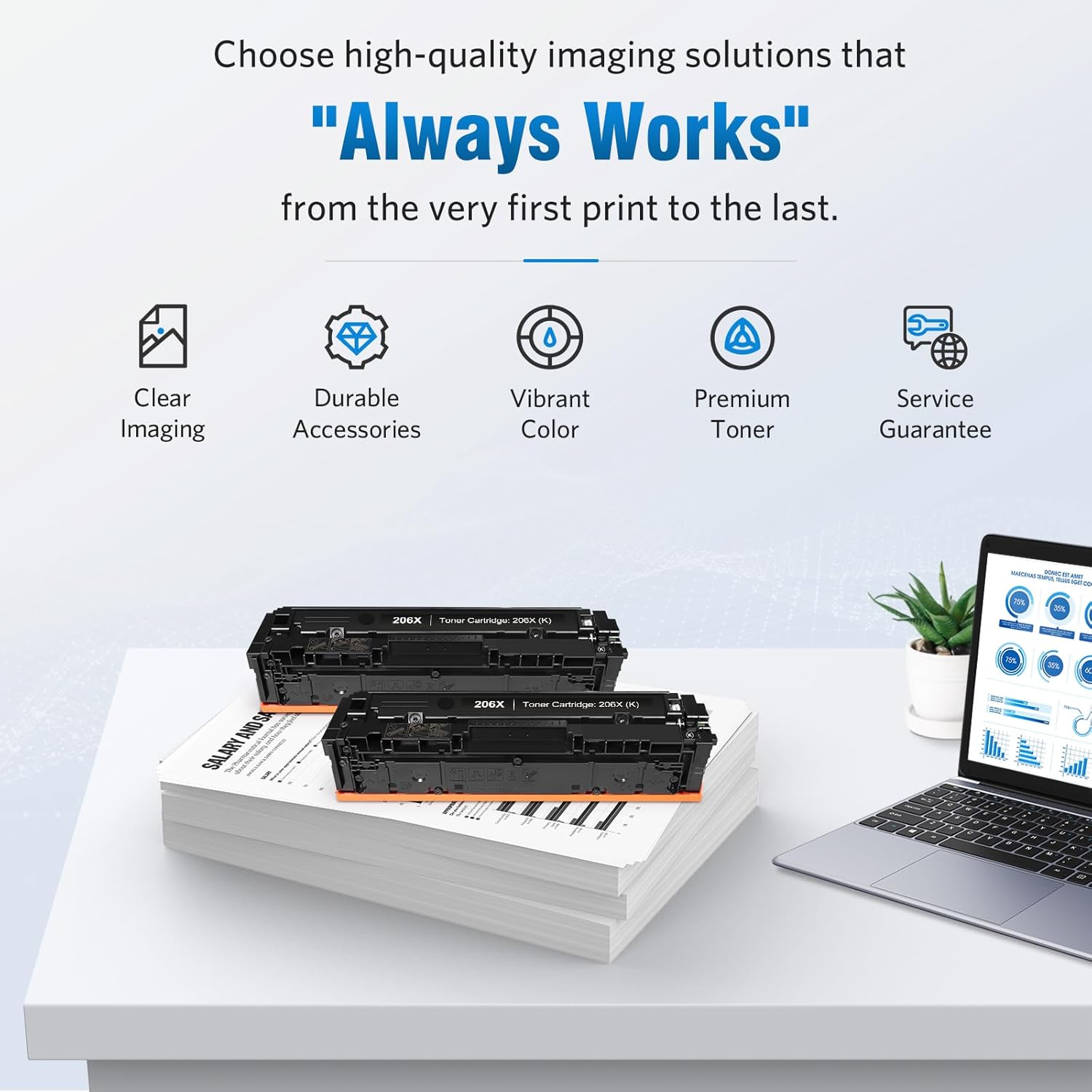 • With Advanced Patented Chip: Allwork toners feature the latest advanced patented chip, ensuring easy printer recognition,enabling precise toner life tracking for each color and automatic color correction, ensuring vibrant prints and maximizing toner efficiency.