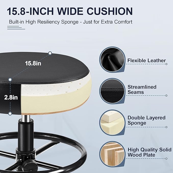 • Details Determine Quality: This Rolling Stool is made of quality PU leather, making it easy to clean and maintain. It's filled with soft, high-density memory foam and features smooth, silent rollers for a comfortable seating experience for long periods of time