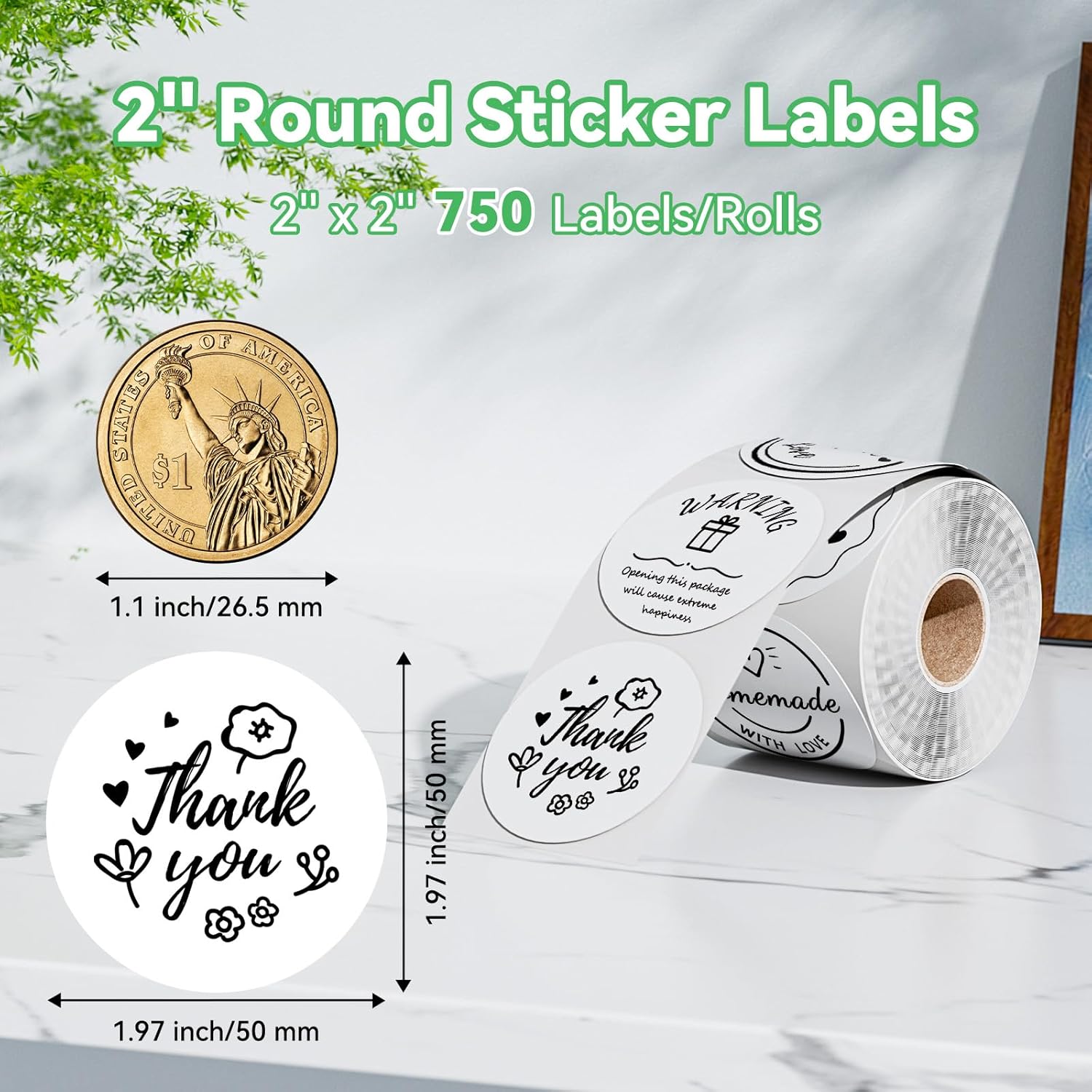 • [Specifications] - White round labels exclusively for thermal printers, feature a comfortable 2" circle size with 750 labels per roll in a minimalist white color, can be used for different purposes