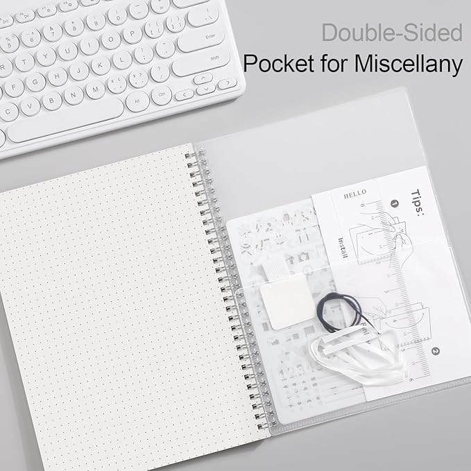 AHGXG Bullet Dotted Journal - Dot Grid Spiral Notebook 8.5" x 11", A4 Large Dotted Notebook, 100 GSM Thick Paper, Waterproof Plastic Cover Journals for Bullet Journaling, Sketching, Transparent
