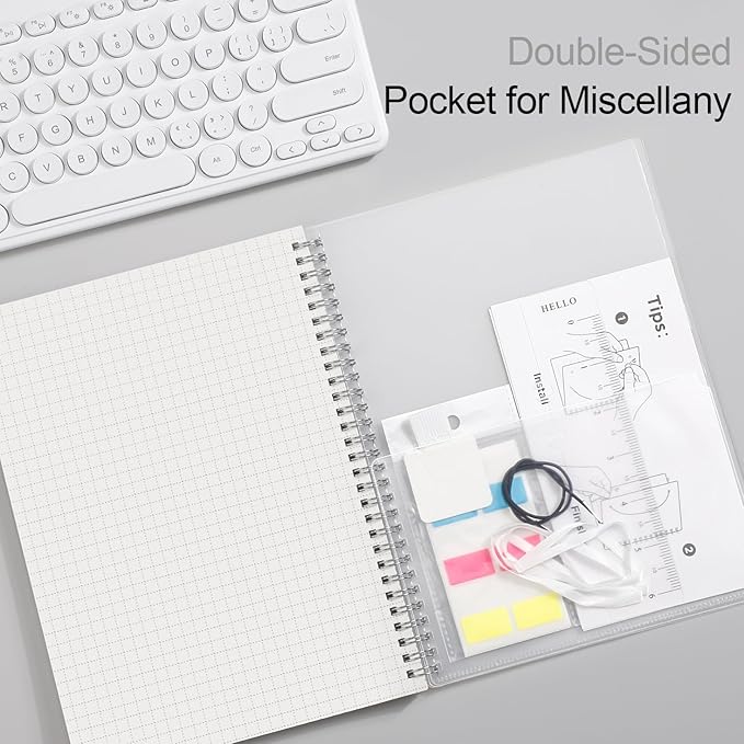 • PRACTICAL LAYOUT: Equipped an elastic band, a self-adhesive pen holder and removable bookmark ruler to keep your notebook organized. Comes with a DIY bookmark with a ribbon for self-attachment to the spiral, serving as a bookmark. Features a double-sided pocket for storing miscellany and 18pcs sticky notes for additional organization and reminders