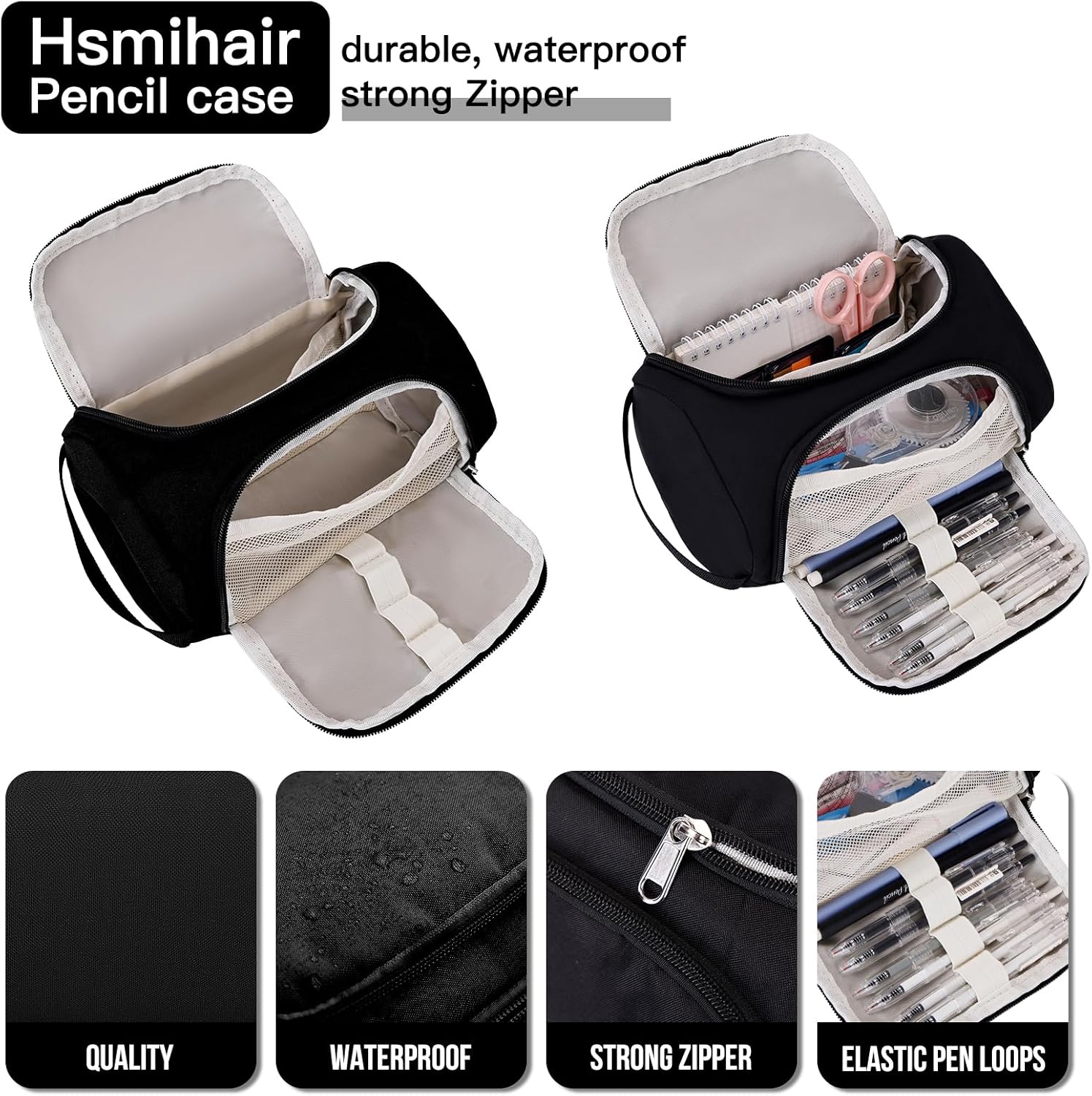 Large Pencil Pouch,Pencil Case Aesthetic,Zipper Pencil Box For Girls Back To School Supplies Emergency Bag Makeup Bag (Black)