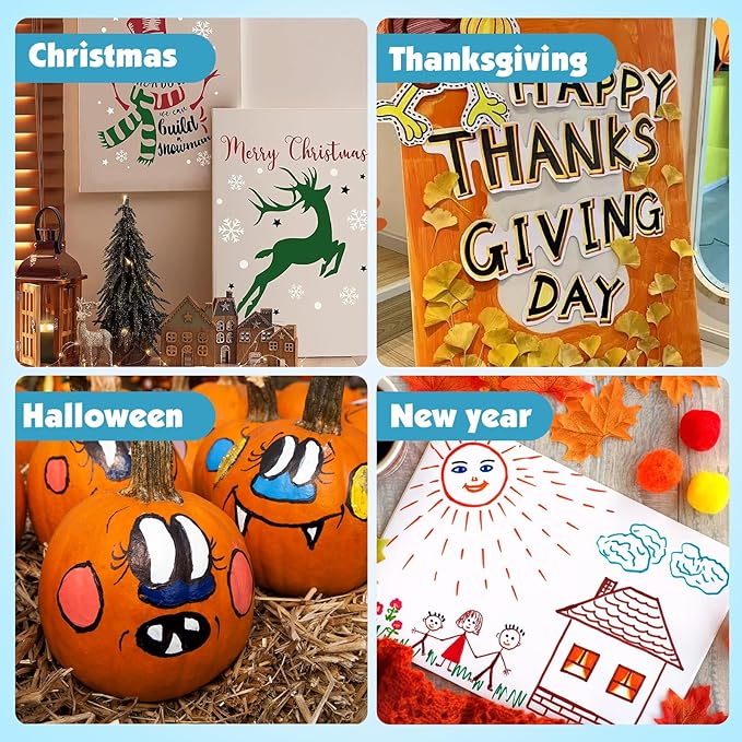 • 【DIY Gift】The bright colors make our acrylic pen works more vivid and interesting, making them perfect for DIY gifts.You can use it to design your bullet diary, plan book, scrapbook, Christmas card, birthday gift, or any DIY craft project. It is also suitable for creating various festivals, such as Halloween, Thanksgiving, Christmas, etc