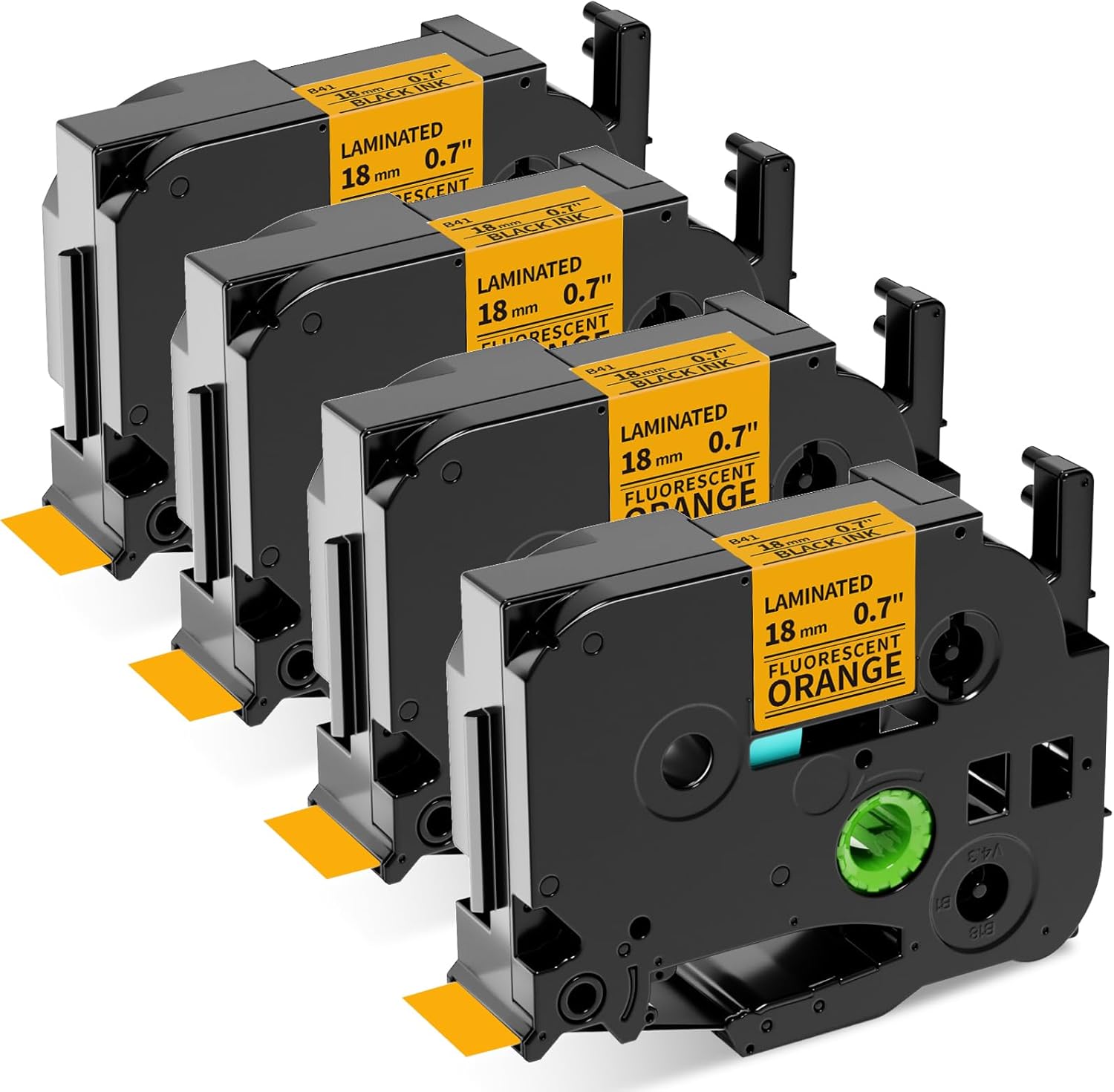 • [Package] 4 Pack Compatible with Brother P touch tze tz tape 18mm label tape TZe-B41 (TZeB41/ TZ-B41/ TZB41), Laminated tape black on fluorescent orange. Width-3/4 inch 18mm, length- 26.2 feet (8 m) for each tape.