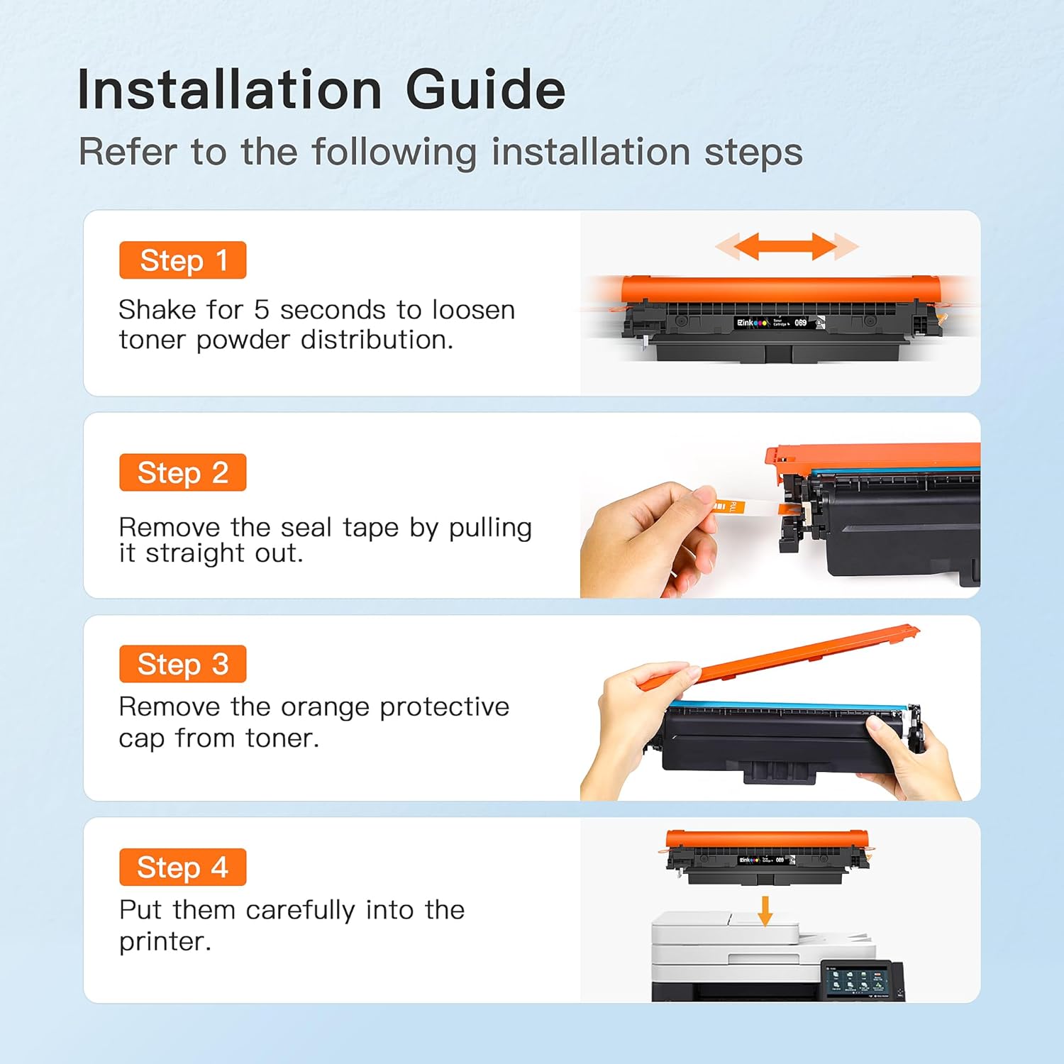 • Product name: E-Z Ink Compatible toner cartridge with Chip replacement for canon 069 toner cartridge to use with canon mf753cdw toner cartridges replacement for canon 069H cartridge set