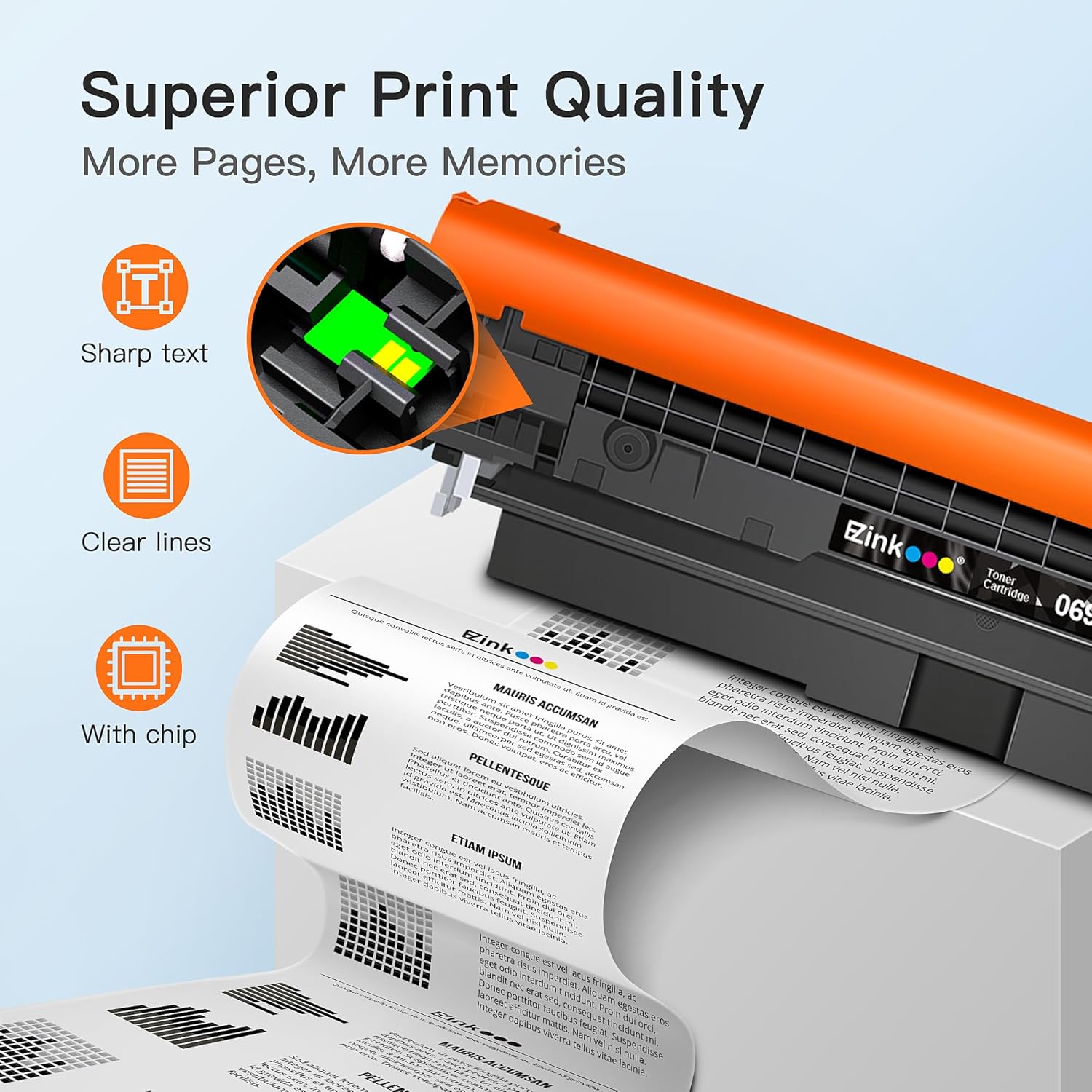 • Refined 069 toner powder provides high-quality images and text