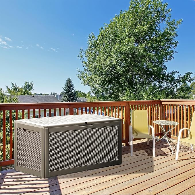 • High-Quality Resin Material:Constructed from the latest high-quality resin, this deck box is waterproof, UV-resistant, anti-fading, and anti-bending, ensuring durability for long-term outdoor use.
