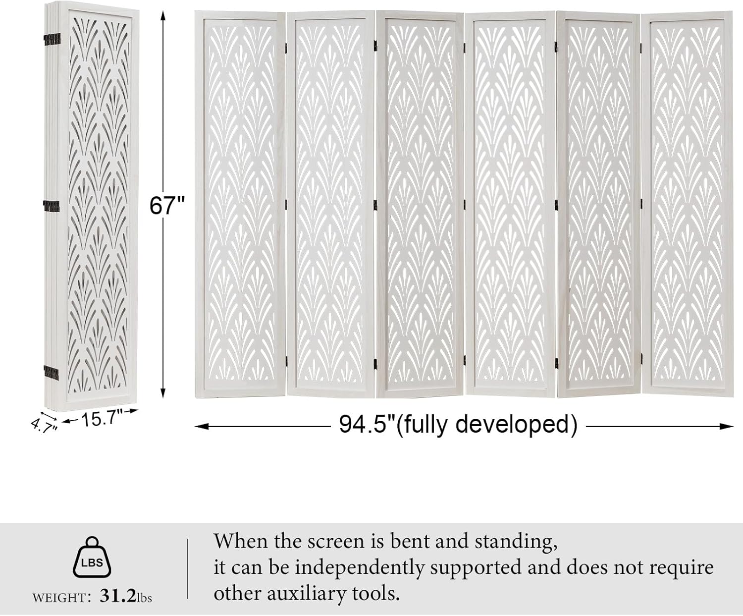 • 【Premium Materials】 Crafted from premium materials, including solid wood and carved MDF, our white room divider combines durability with artistic detail. The carved panels allow gentle light to pass through, creating a subtle play of shadows that enhances the ambiance of any room. This blend of sturdy construction and aesthetic appeal ensures long-lasting performance in various indoor settings.
