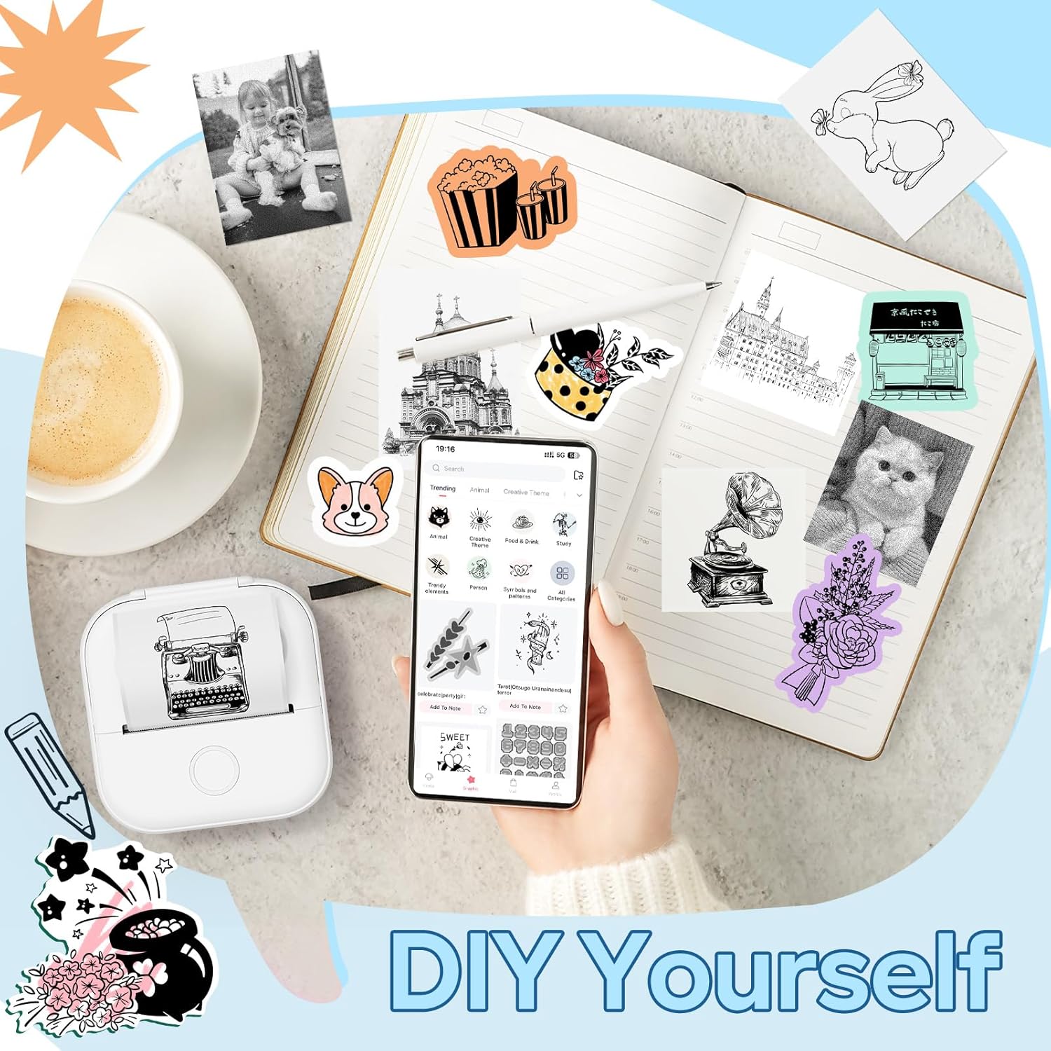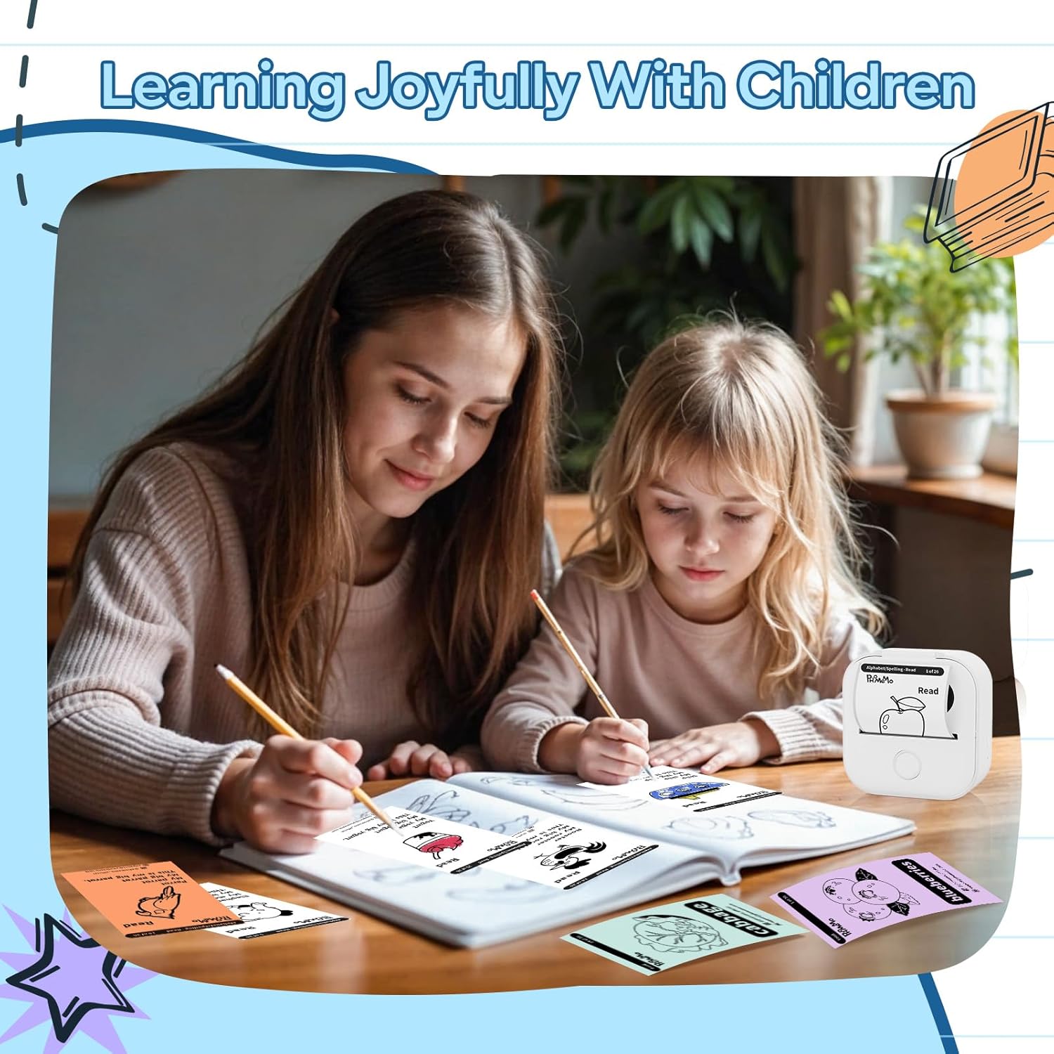 • Multi-functional thermal mini printer: The Y02C sticky note printer is suitable for use in the office, DIY projects, home, and study. In the workplace, it can be used for to-do lists, memos, addresses, receipts, and in daily life, it can be used for bookmarks, greeting cards, label recognition, coloring, letter learning, and card recognition, among other purposes