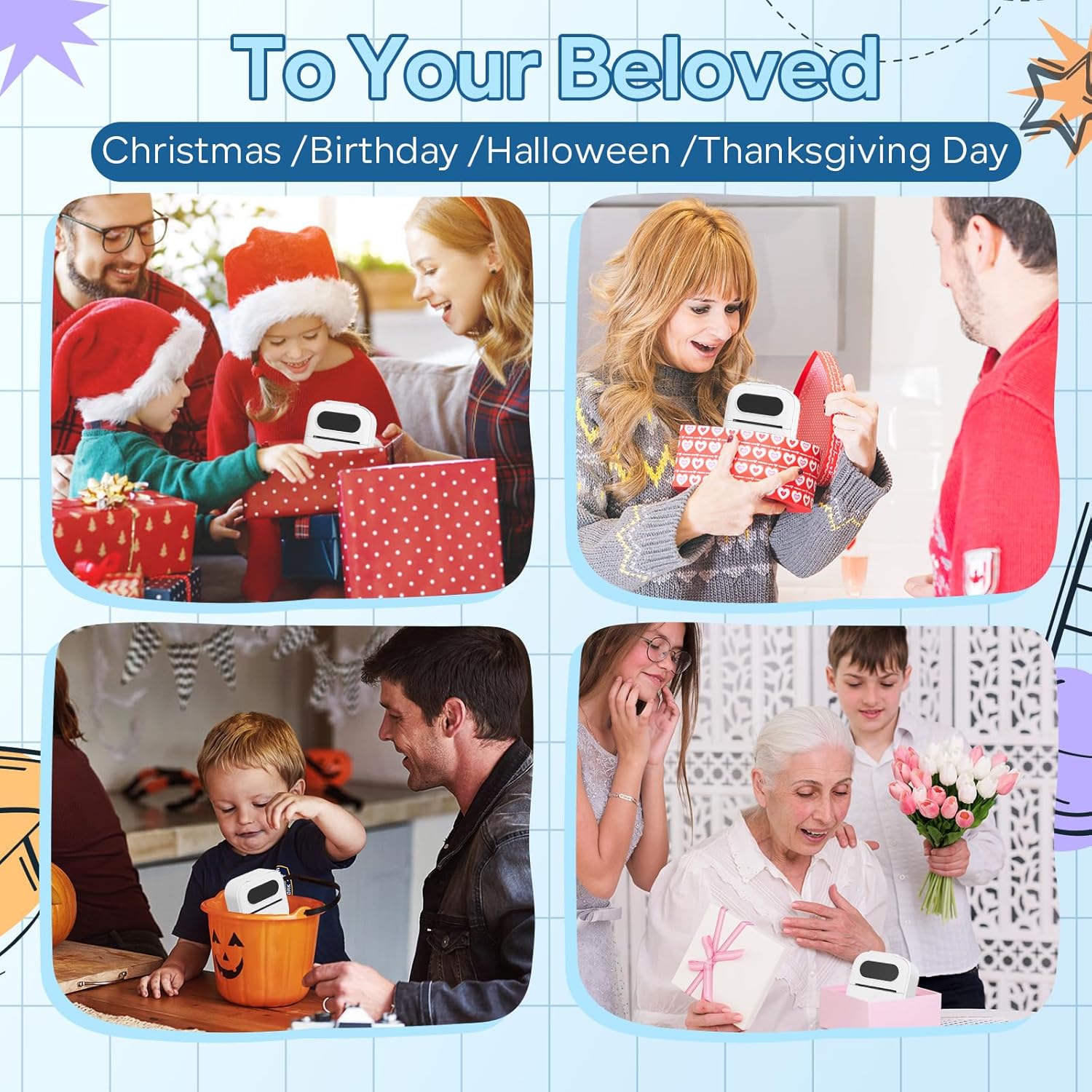 • Custom Label Maker: This small portable printer is suitable for use with family and friends during Halloween, Thanksgiving, birthdays, and other holidays. Also you can DIY design patterns and cut out various shapes to meet your needs