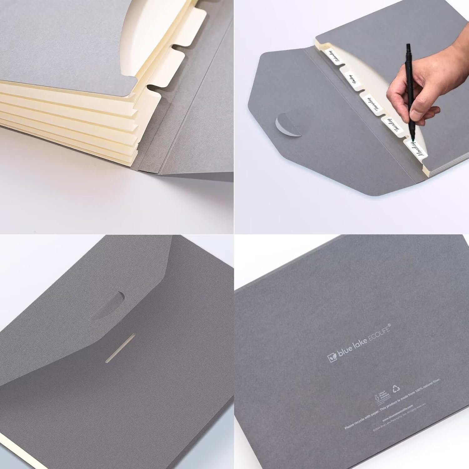 Blue Lake ECOLIFE Plastic-Free Accordion File Folders 6 Pocket Expanding File Folder Organizer Grey