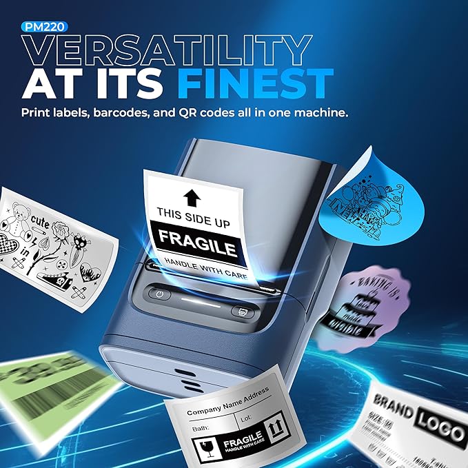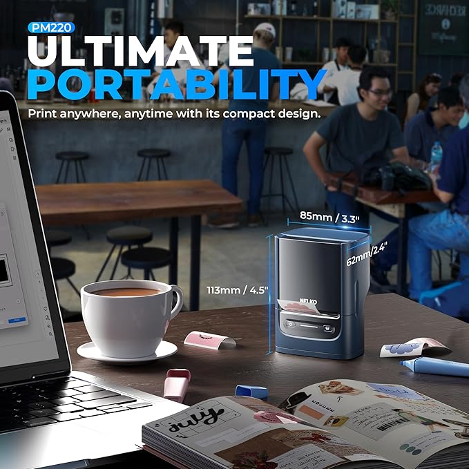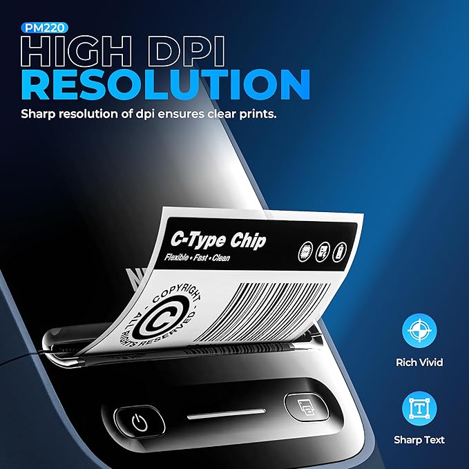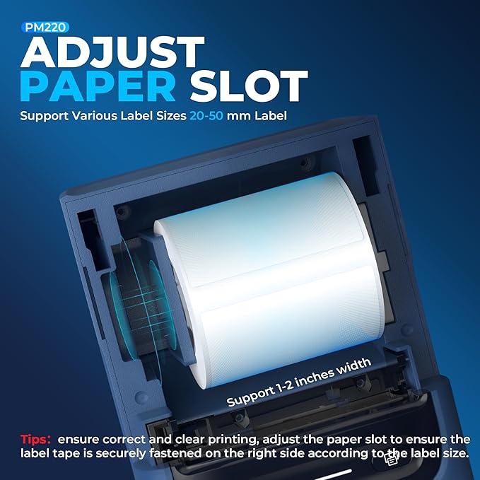 • Portable- 2 Inch PM220 label maker machine with tape compatible with smartphone & PC. Easily connect label printer to your smartphone in just 5 seconds for fast and convenient printing, label printer achieves convenient, smooth & fasts printing. Mini compact design, you can bring this portable label maker machine with tape to anywhere.(Note: charging adapter not included, not suitable for fast charging adapter.)