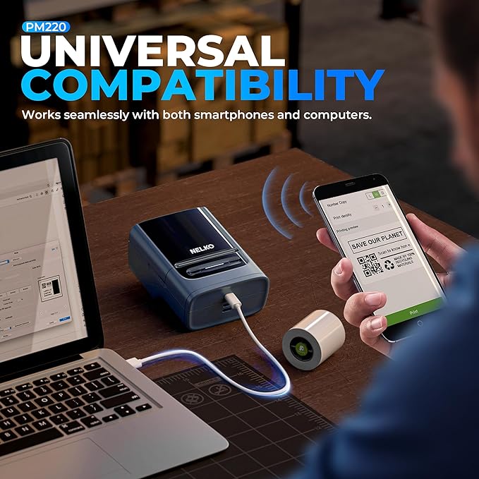 • Easy to Use- PM220 Bluetooth Label Maker supports iOS & Android and PC. For iOS & Android mobile phone, please download the "Nelko" APP to Print via Bluetooth. For PC, you need to download the driver and APP for PM220 label printer, please visit " nelkoprint.com" to obtain the PM220 computer driver and APP. Notice: Please DO NOT connect directly via Bluetooth for all devices