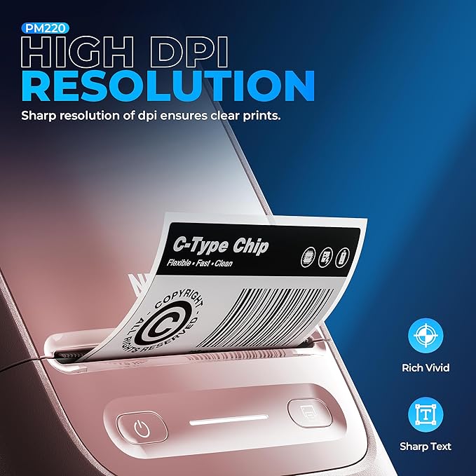 • Portable- 2 Inch PM220 label maker machine with tape compatible with smartphone & PC. Easily connect label printer to your smartphone in just 5 seconds for fast and convenient printing, label printer achieves convenient, smooth & fasts printing. Mini compact design, you can bring this portable label maker machine with tape to anywhere.(Note: charging adapter not included, not suitable for fast charging adapter.)