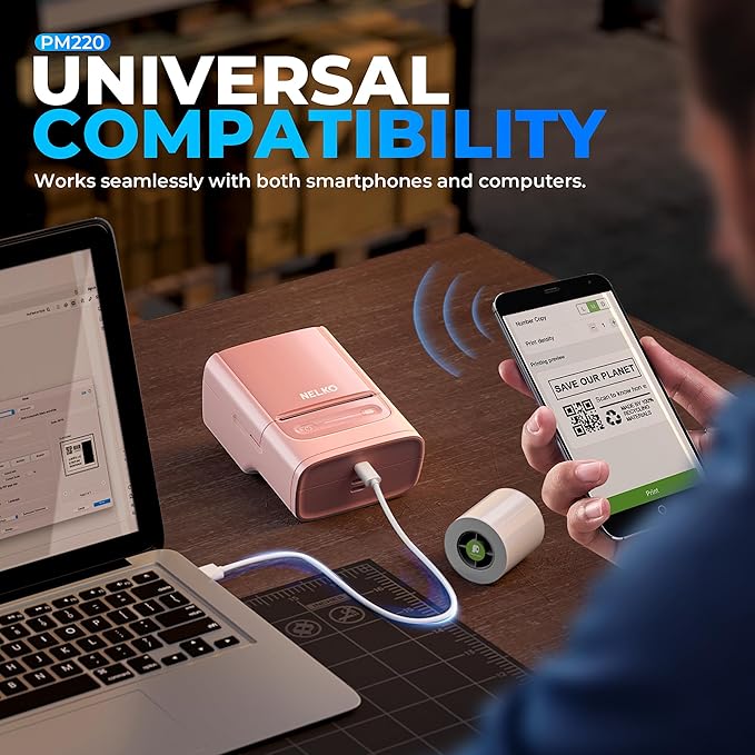 • Easy to Use- PM220 Bluetooth Label Maker supports iOS & Android and PC. For iOS & Android mobile phone, please download the "Nelko" APP to Print via Bluetooth. For PC, you need to download the driver and APP for PM220 label printer, please visit " nelkoprint.com" to obtain the PM220 computer driver and APP. Notice: Please DO NOT connect directly via Bluetooth for all devices
