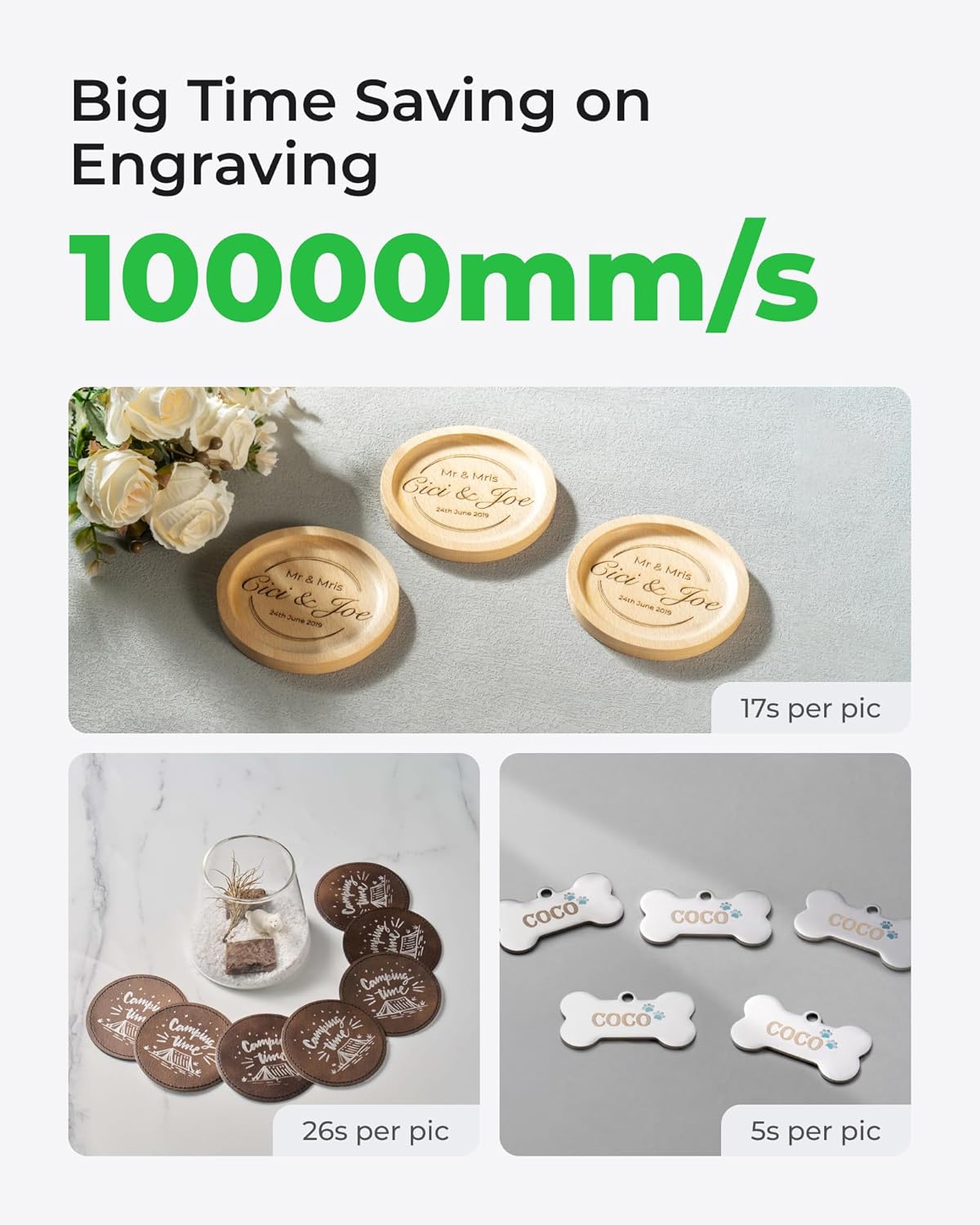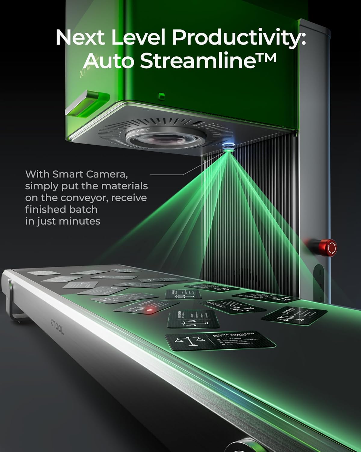 • Factory-Level Productivity: xTool's exclusive Auto Streamline Production, powered by the Auto Conveyor (available separately) and a 16MP SMART CAMERA system, effortlessly manages batch engraving. This laser engraver and cutter machine automatically recognizes shapes on the conveyor, intelligently fills patterns on every piece nonstop, and with its 10,000mm/s speed, completes entire batches in minutes.