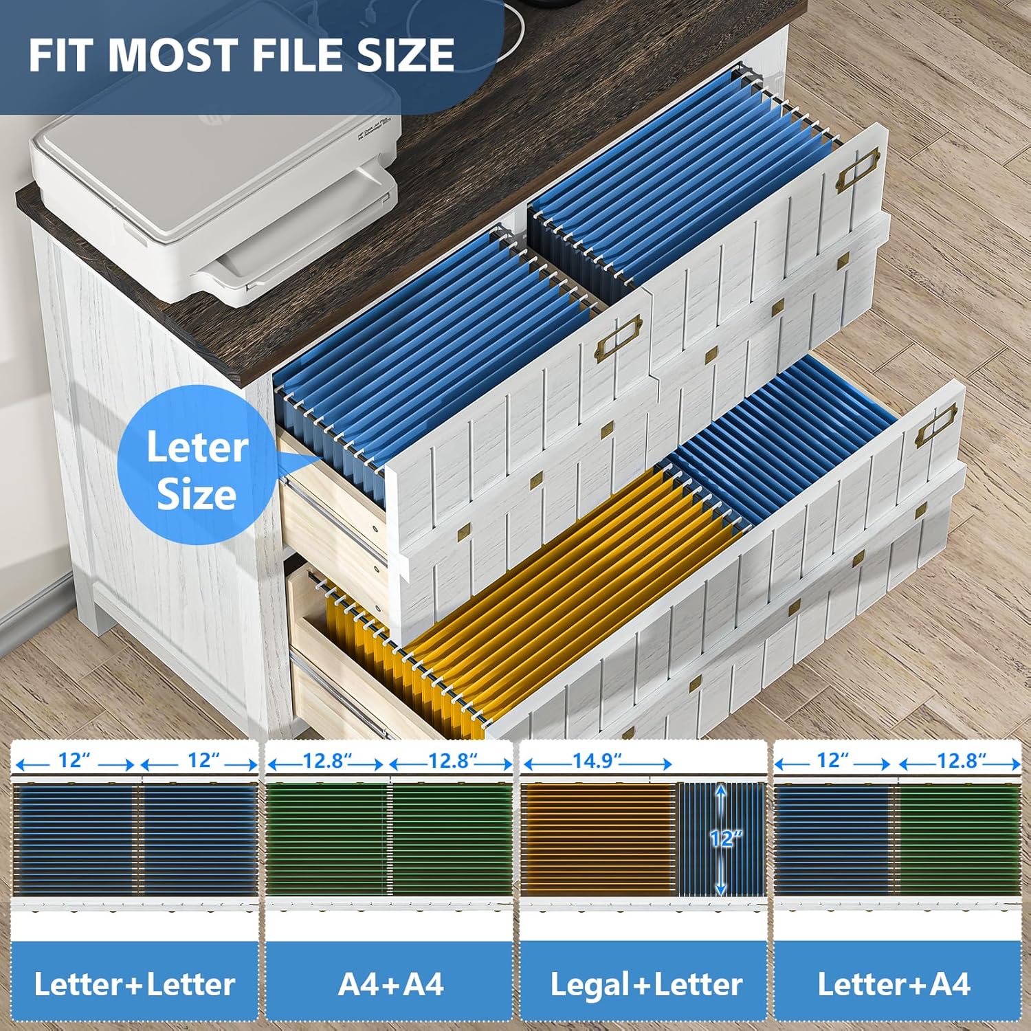 • 【Full-Extension Slides】: Featuring full-extension slides, the drawers can be pulled out almost entirely, allowing for easy access and convenient file storage and retrieval.
