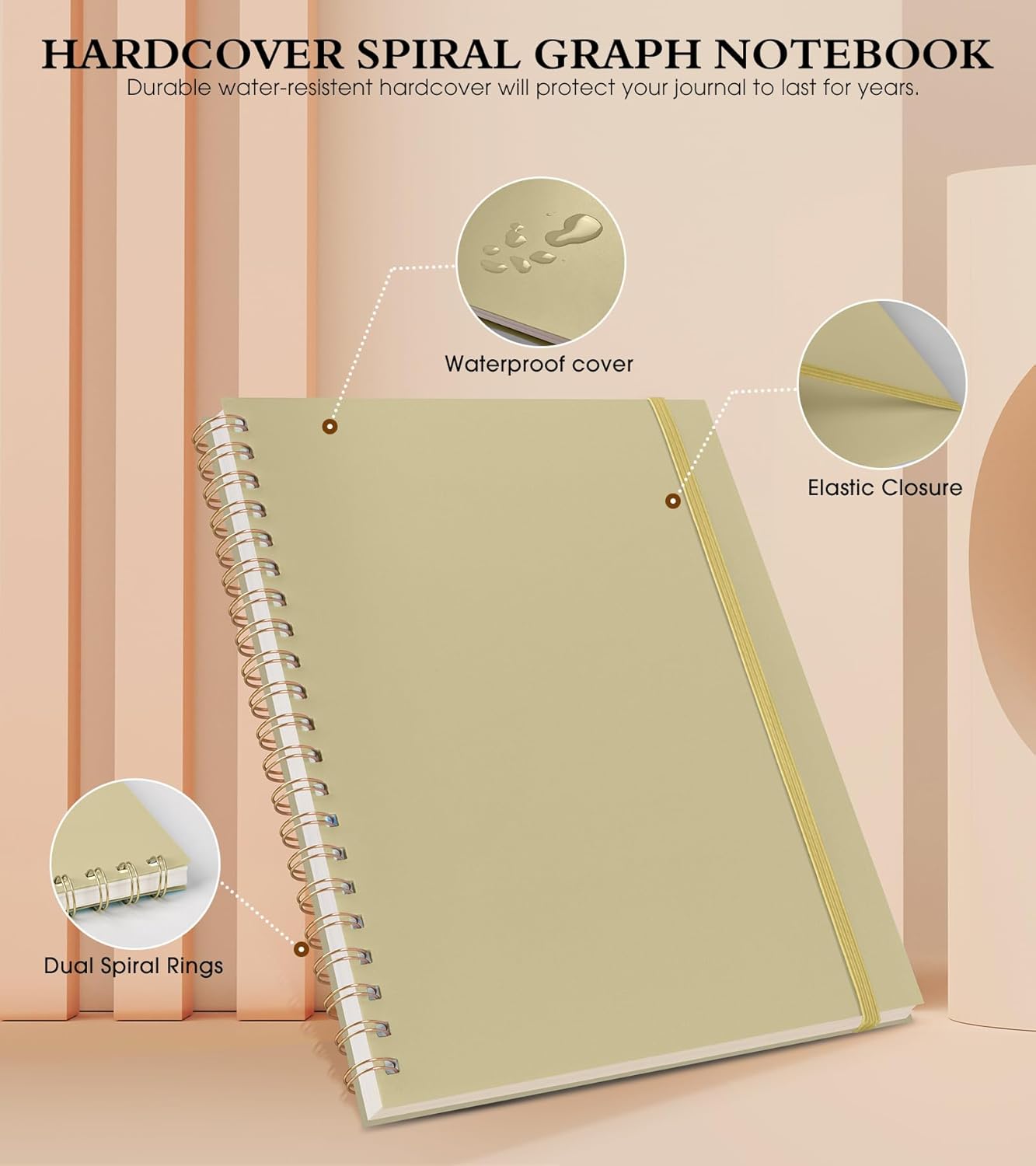 • 【A4 Graph Spiral Journal Notebook】 Large a4 size 8.5"x11" grid notebook, standard 5mm x 5mm graph paper for better writing and drawing experience. The professional sturdy water-resistant plastic hard cover will protect your graphing notebooks to last for years, which has oil-resistant and anti-bending properties, effectively protecting the internal paper of the journal and provides a comfortable writing surface.
