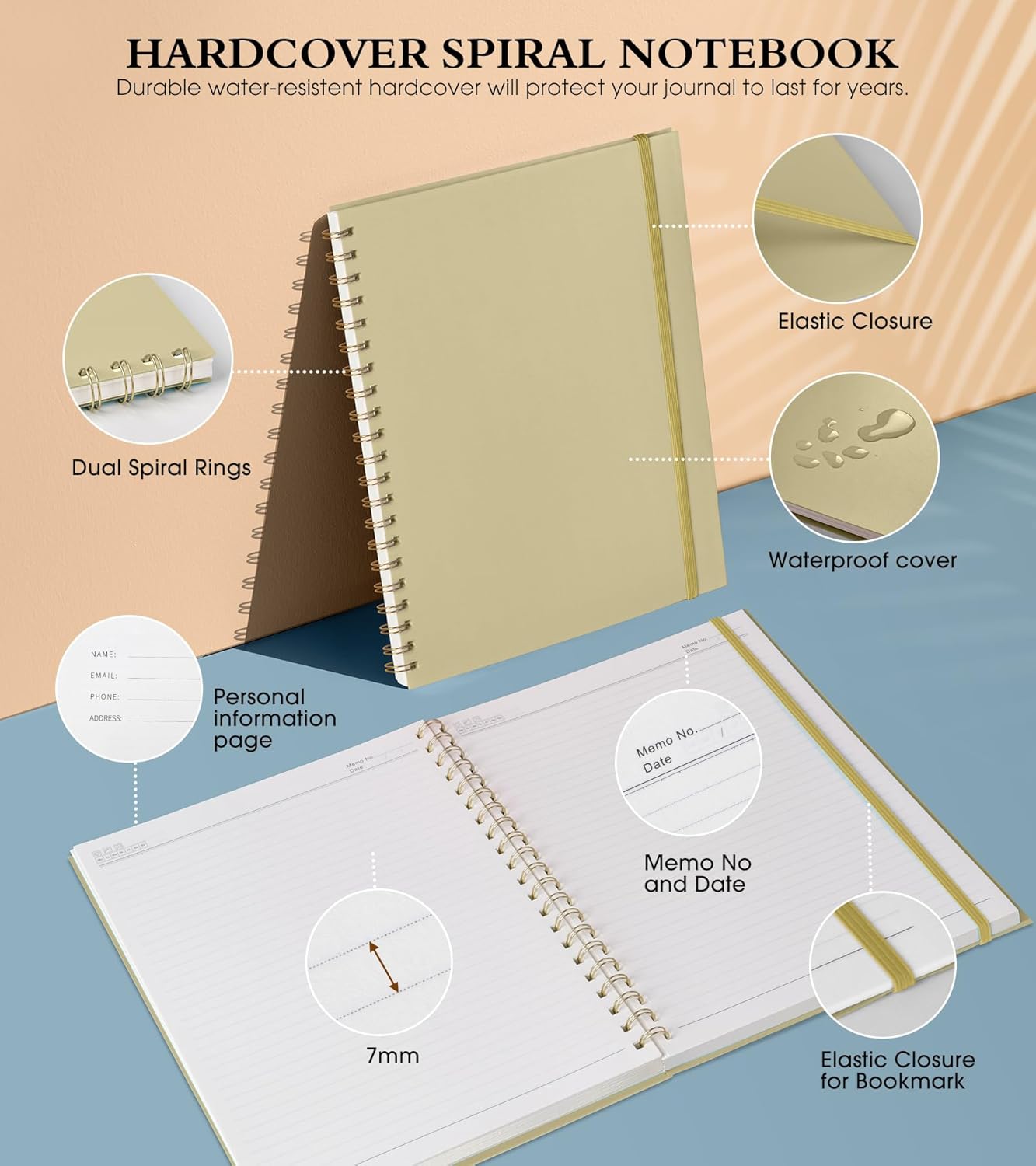 • 【Strong Spiral Metal Twin-Wire】 Our spiral journal notebook has a sturdy gold-color double wire spiral with easy-to-turn pages and keeps pages attached reliably, while still staying flat when opened, which reading more convenient and taking notes more efficient. Spiral bound journal easy to tear-off and fold over, as well as flip the cover back, giving you a better writing experience. Golden spiral bound adds aesthetic matching, it’s the perfect big notebook for journaling, and planning.