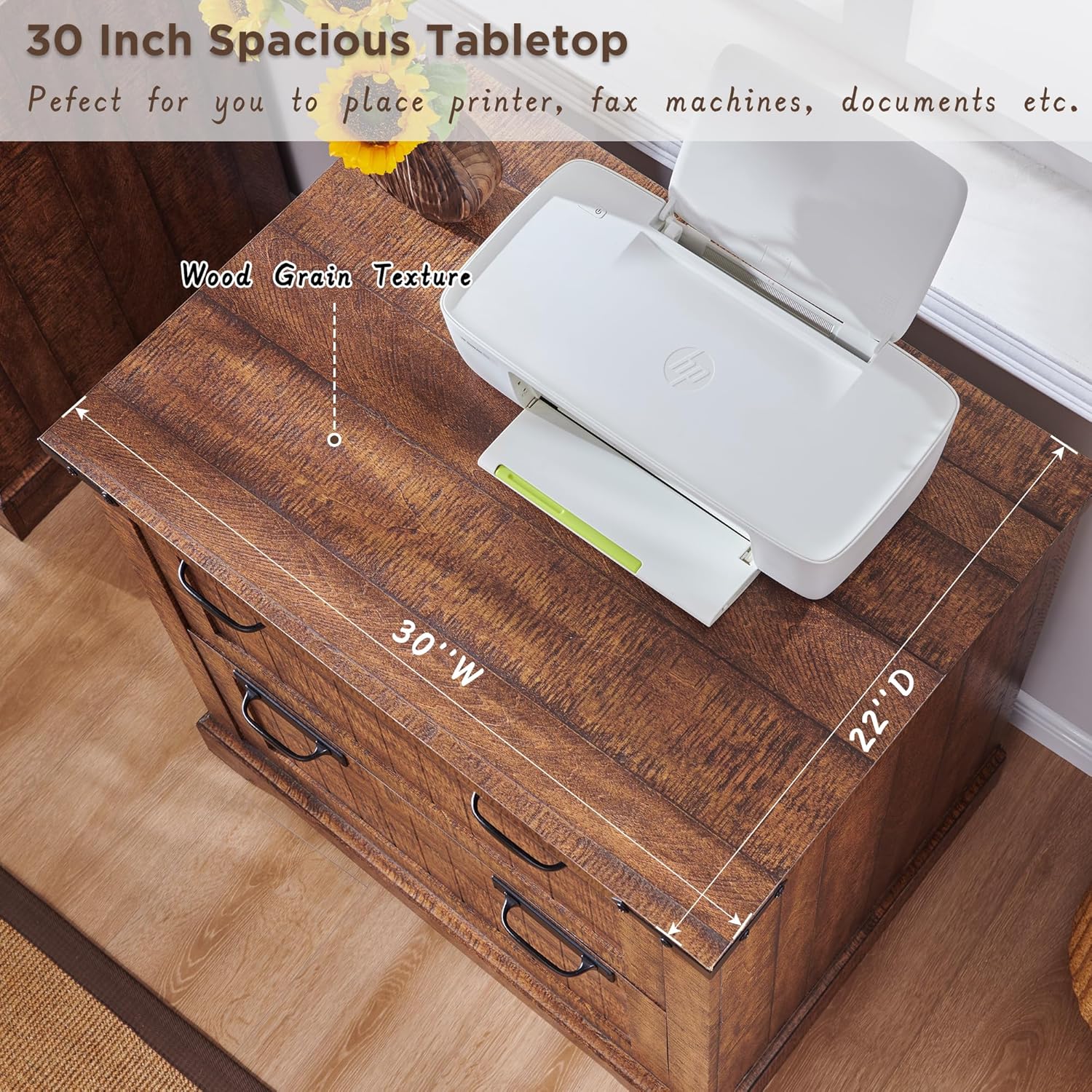 • 30 Inch Spacious Desktop:This office filing cabinet is a powerful assistant for your efficient work. 30 inches spacious desktop has a rustic finish with a delicate touch, being stain-resistant and easy to clean. No matter if you use it intensively for a long time or accidentally cause bumps or water spills, it will always remain aesthetically pleasing and practical.